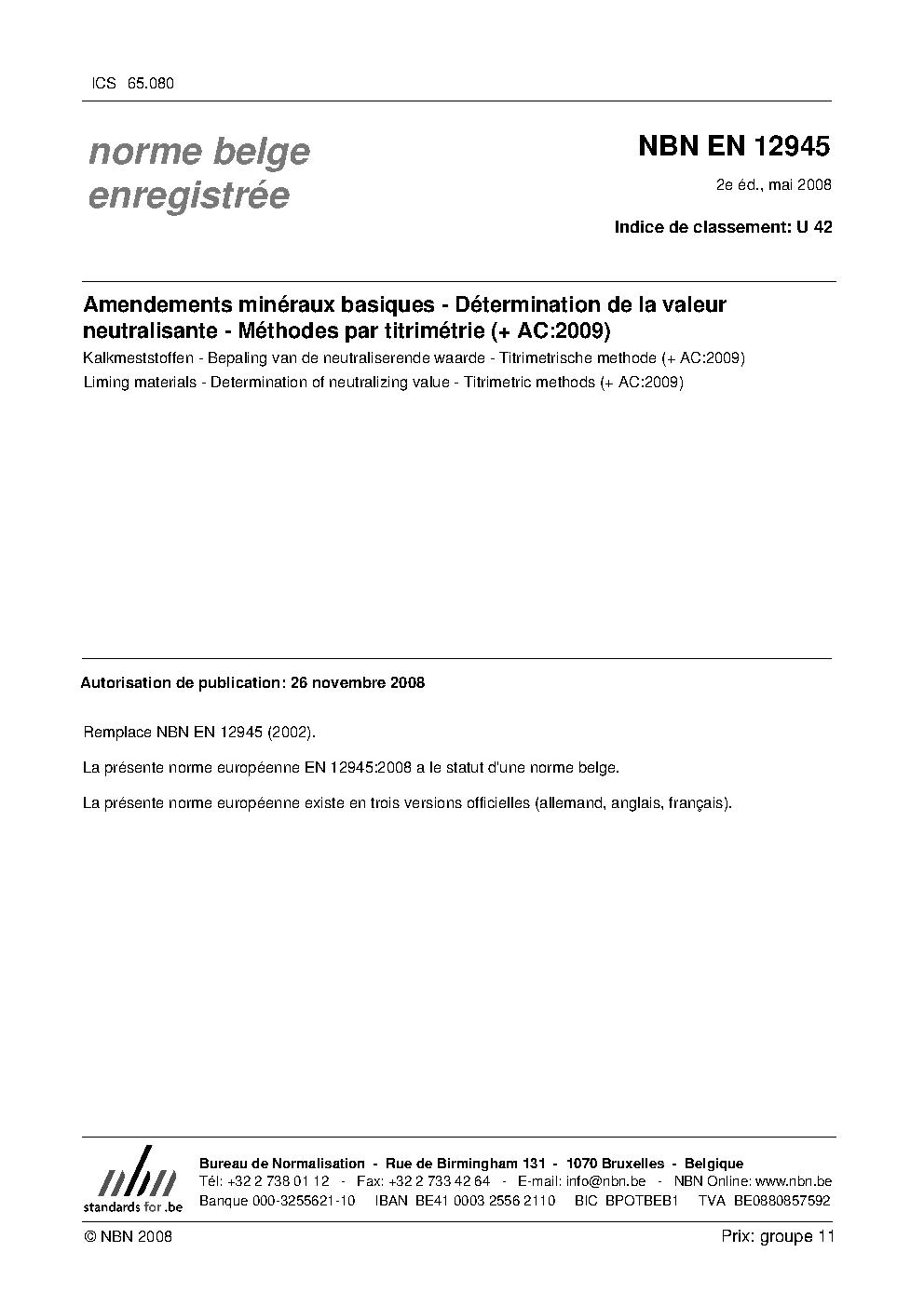| Publisher | Bureau de Normalisation Belge (NBN) |