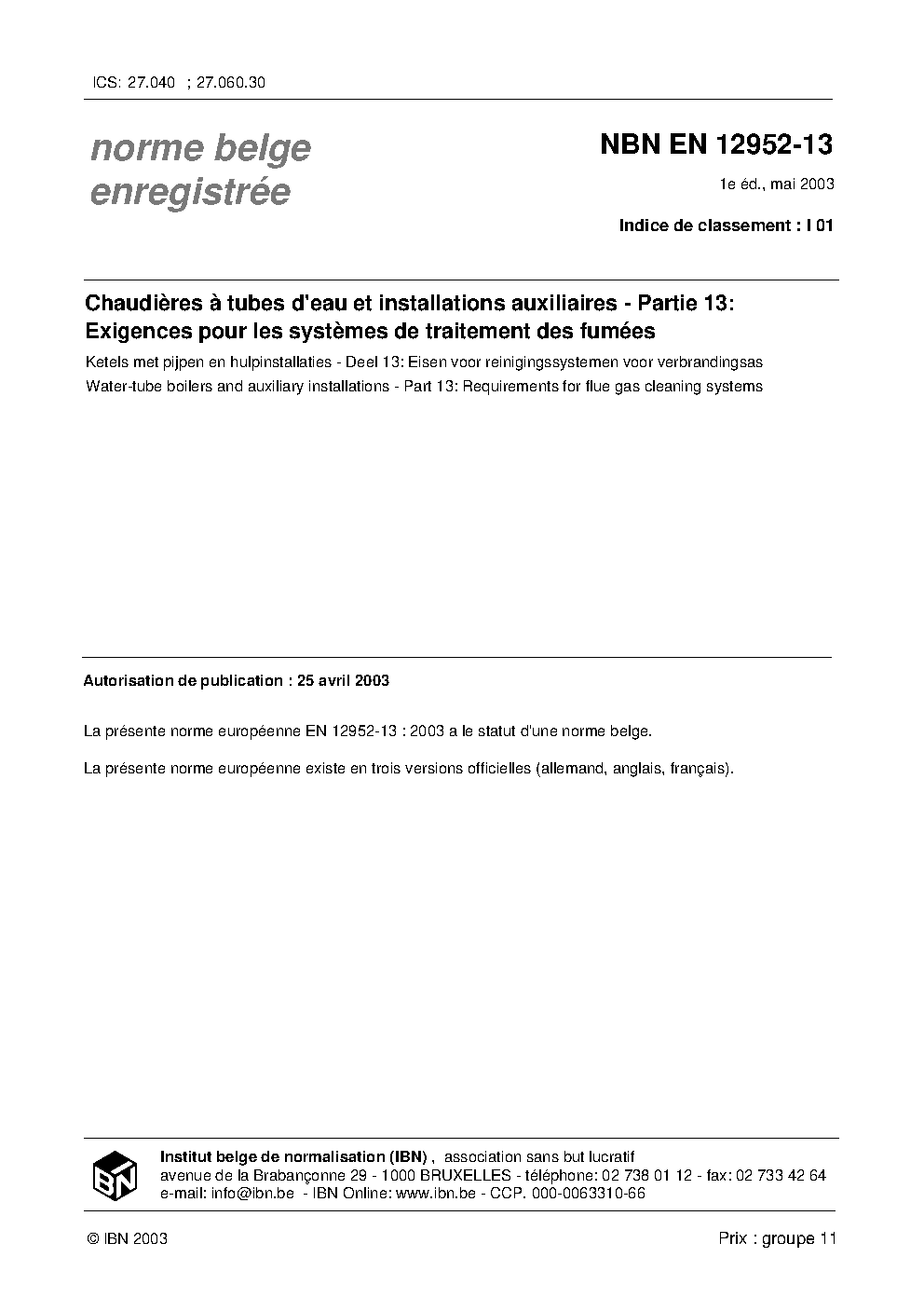 | Publisher | Bureau de Normalisation Belge (NBN) |