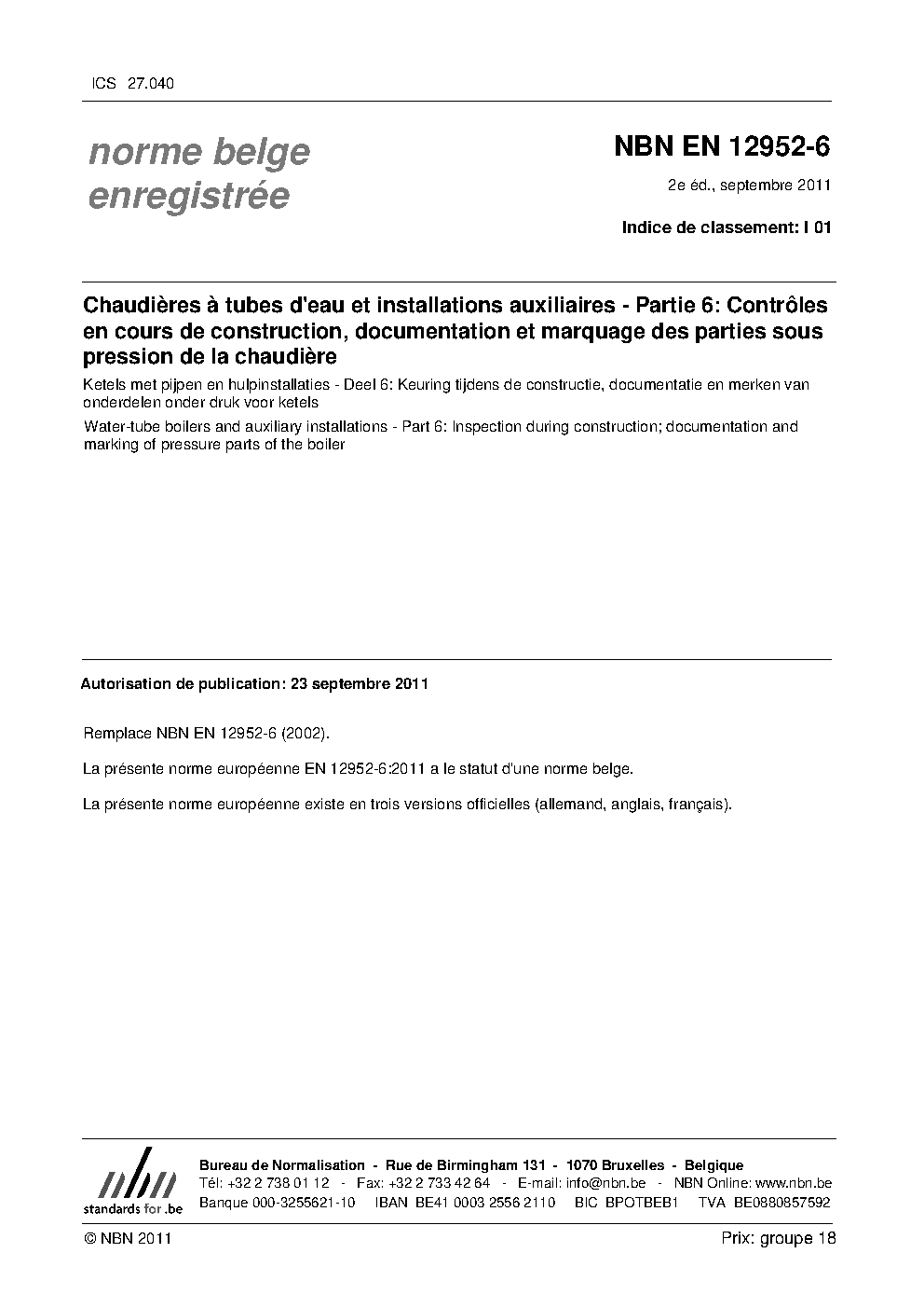 NBN EN 12952-6:2011