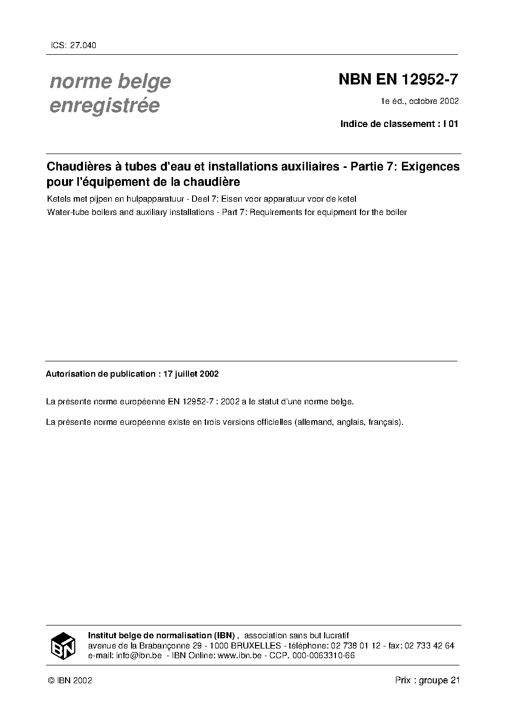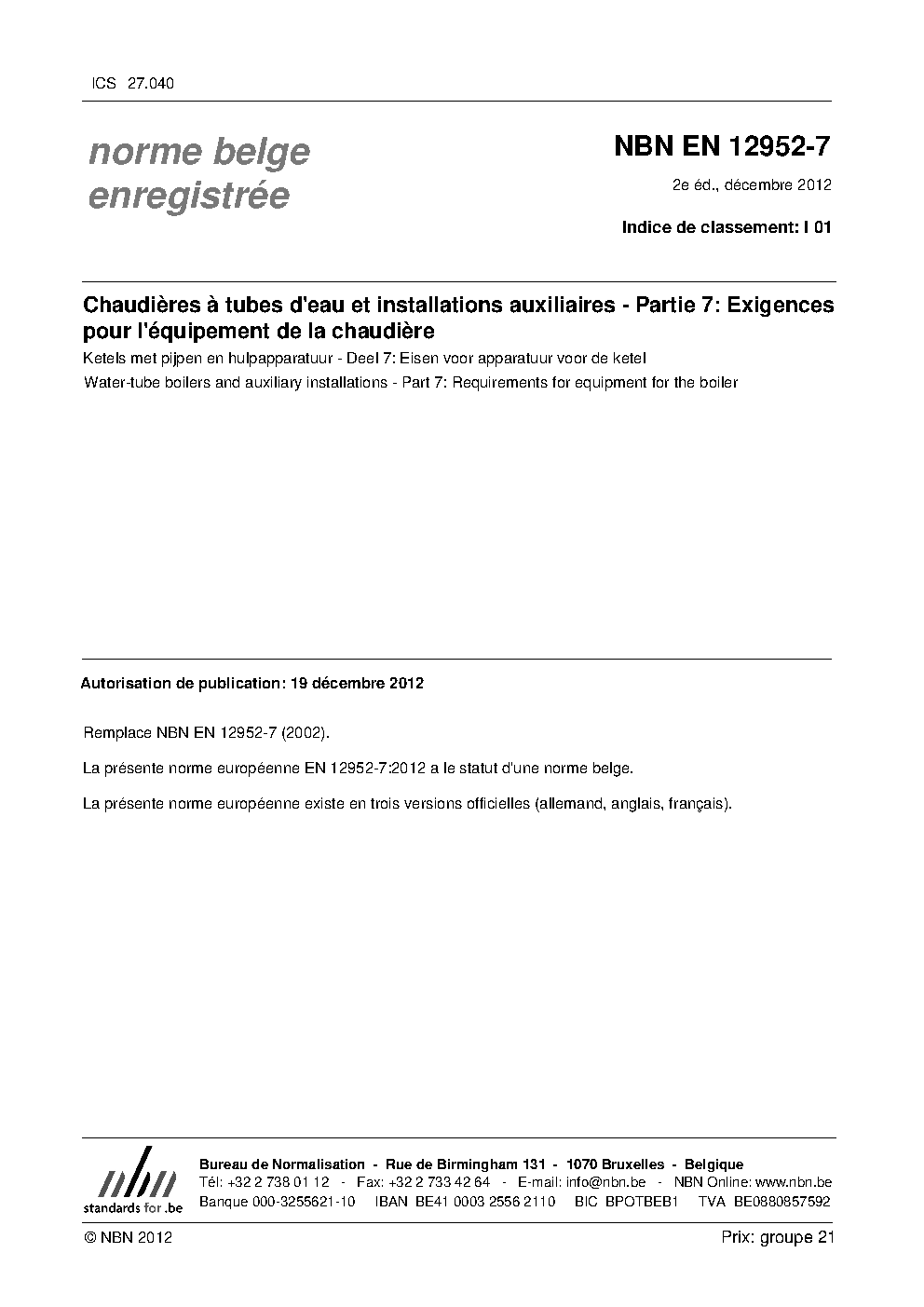 | Publisher | Bureau de Normalisation Belge (NBN) |