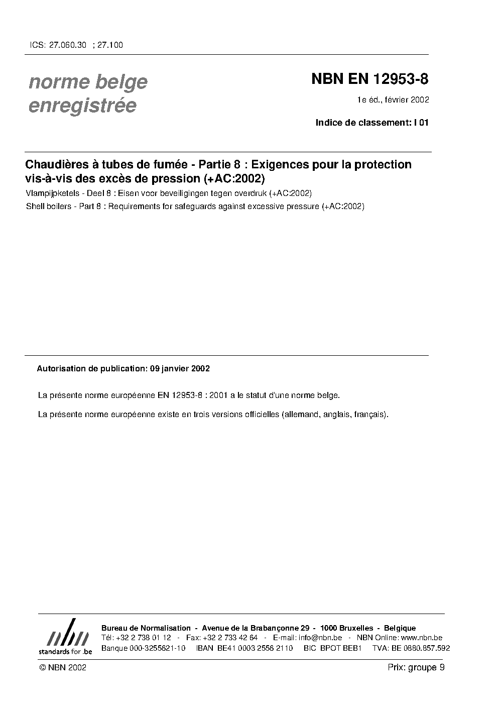 | Publisher | Bureau de Normalisation Belge (NBN) |