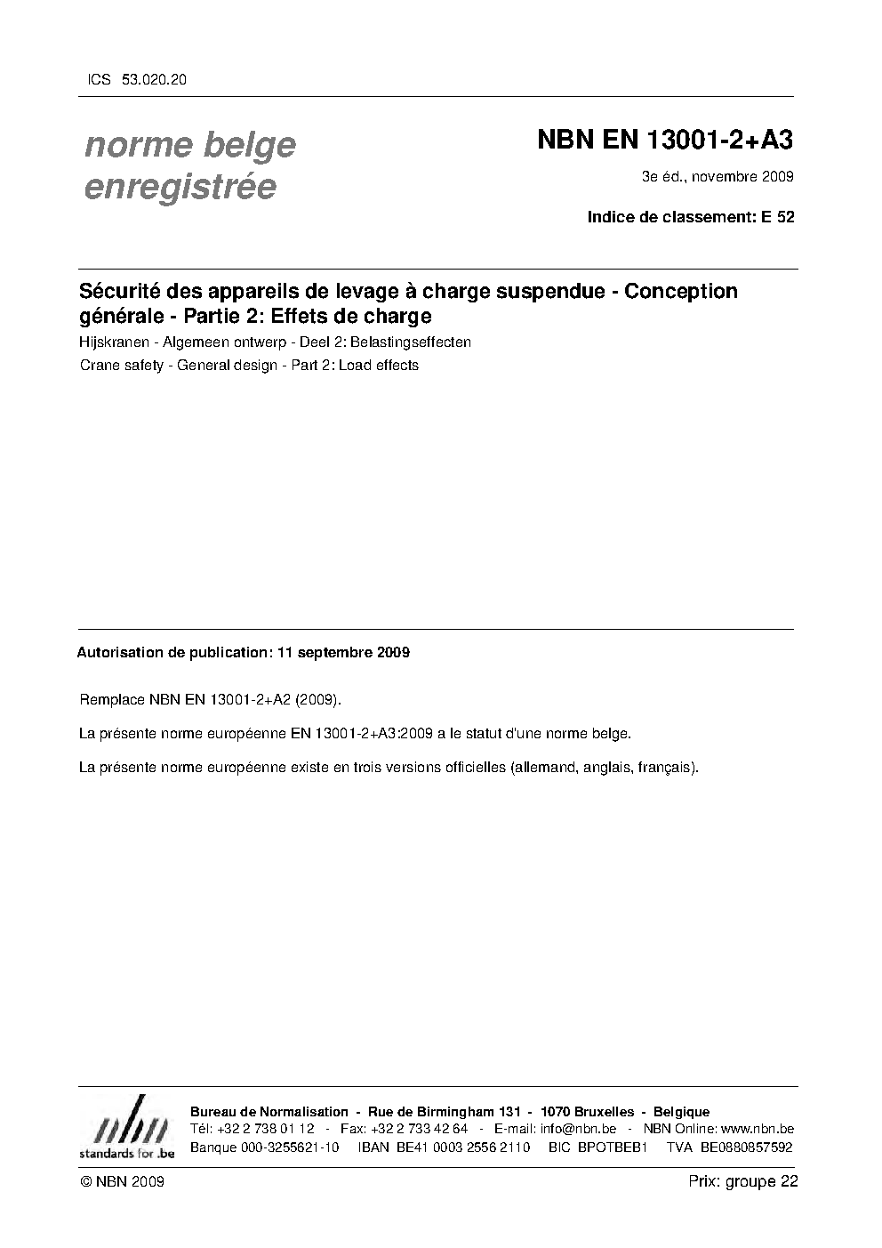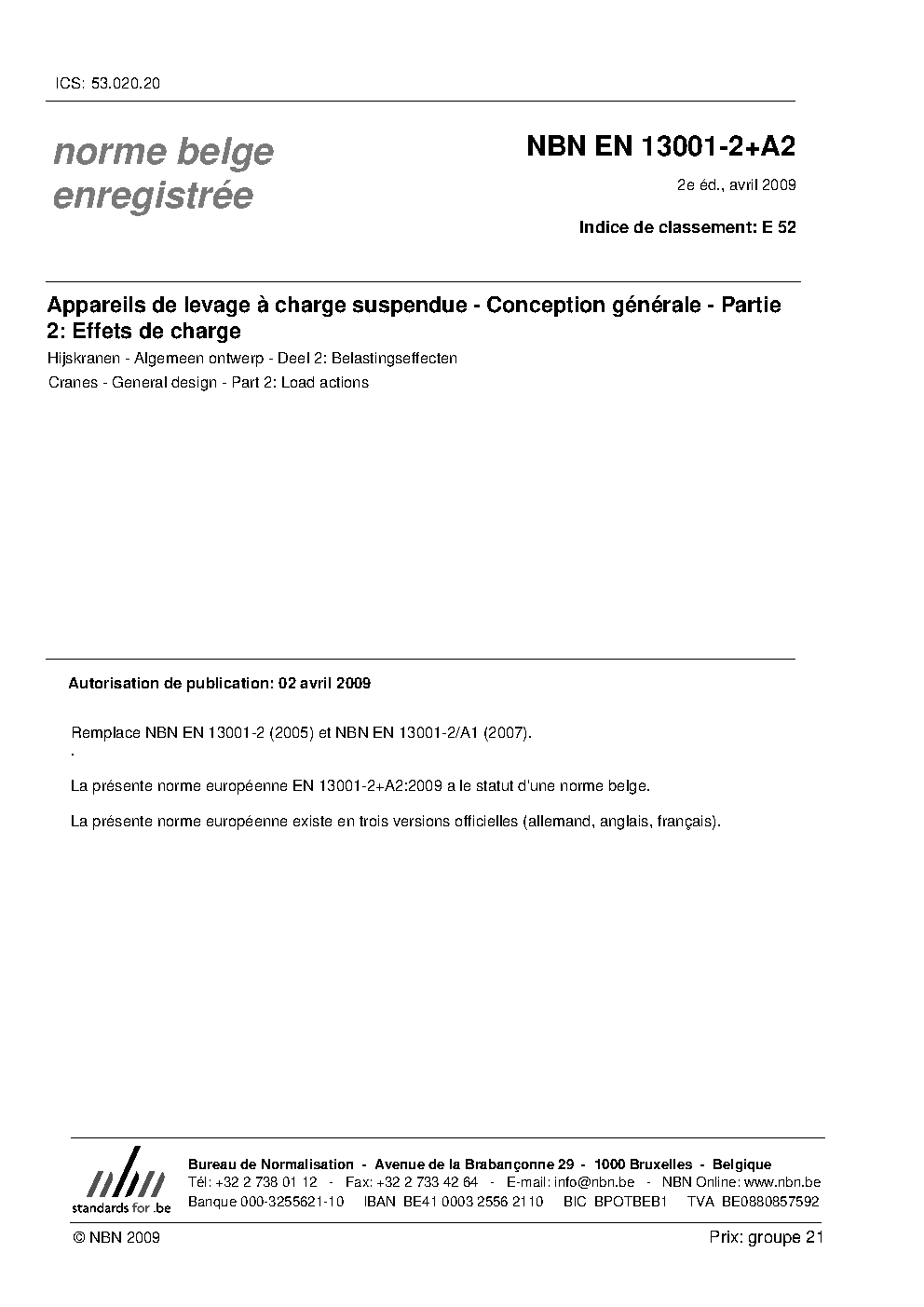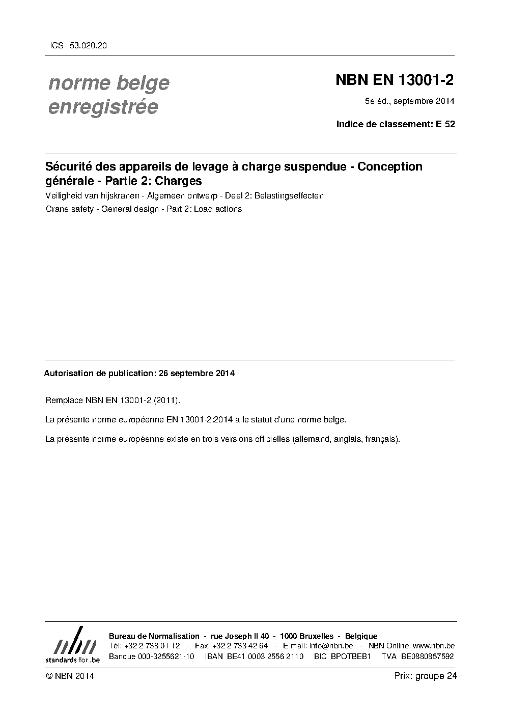 | Publisher | Bureau de Normalisation Belge (NBN) |