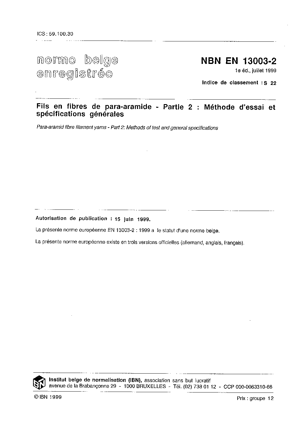 | Publisher | Bureau de Normalisation Belge (NBN) |