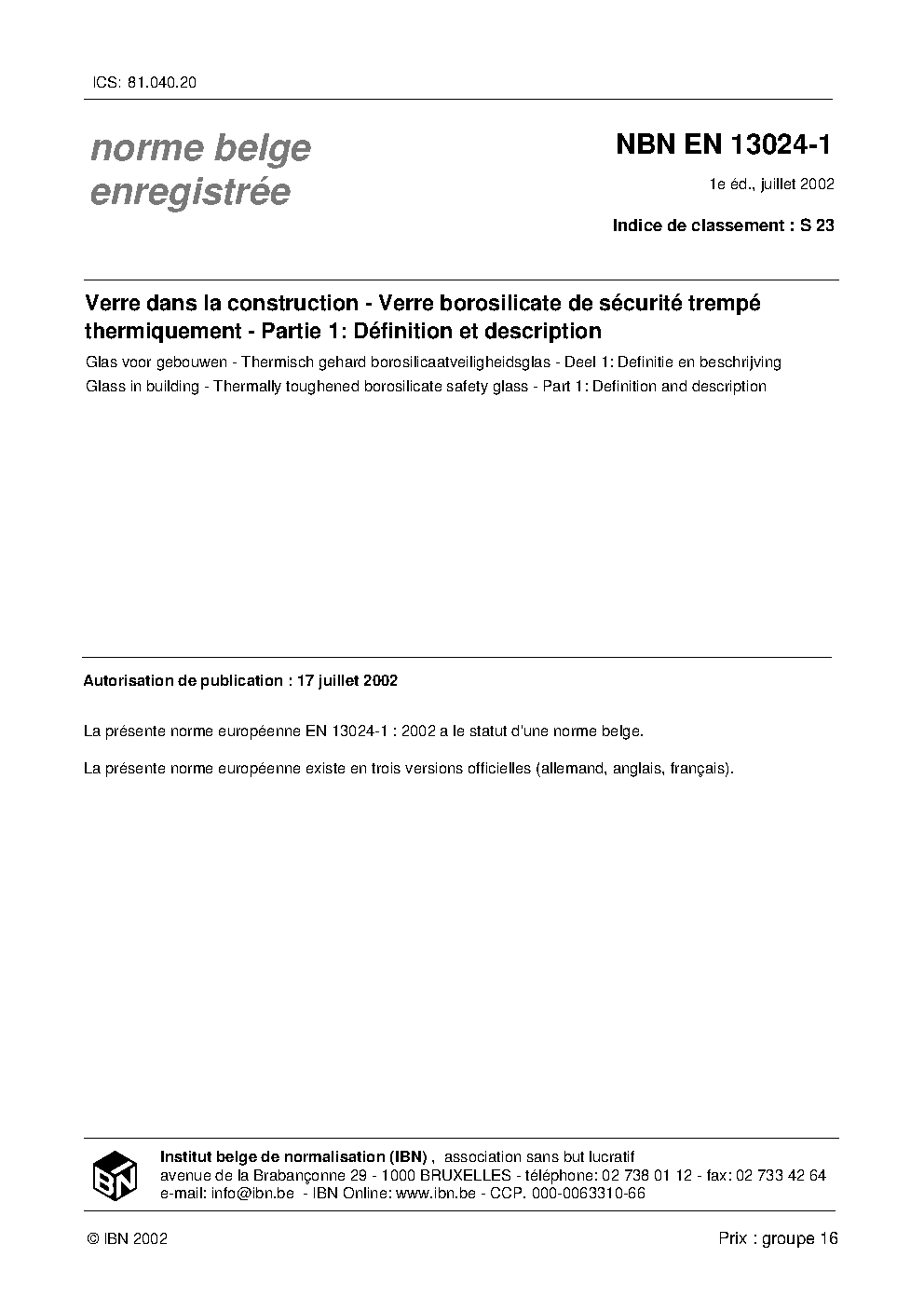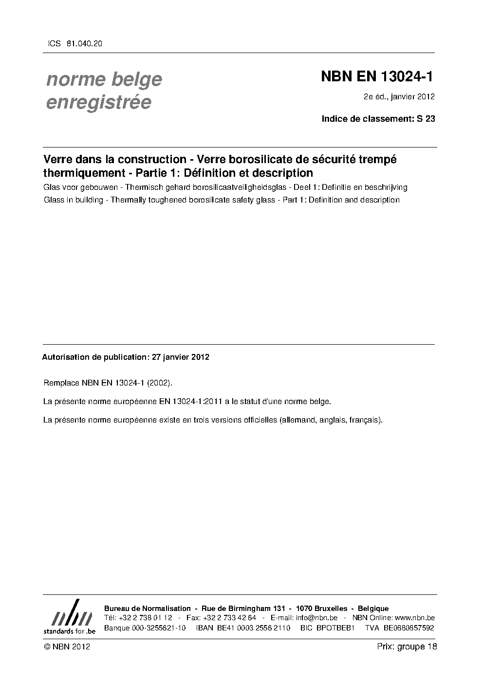 | Publisher | Bureau de Normalisation Belge (NBN) |