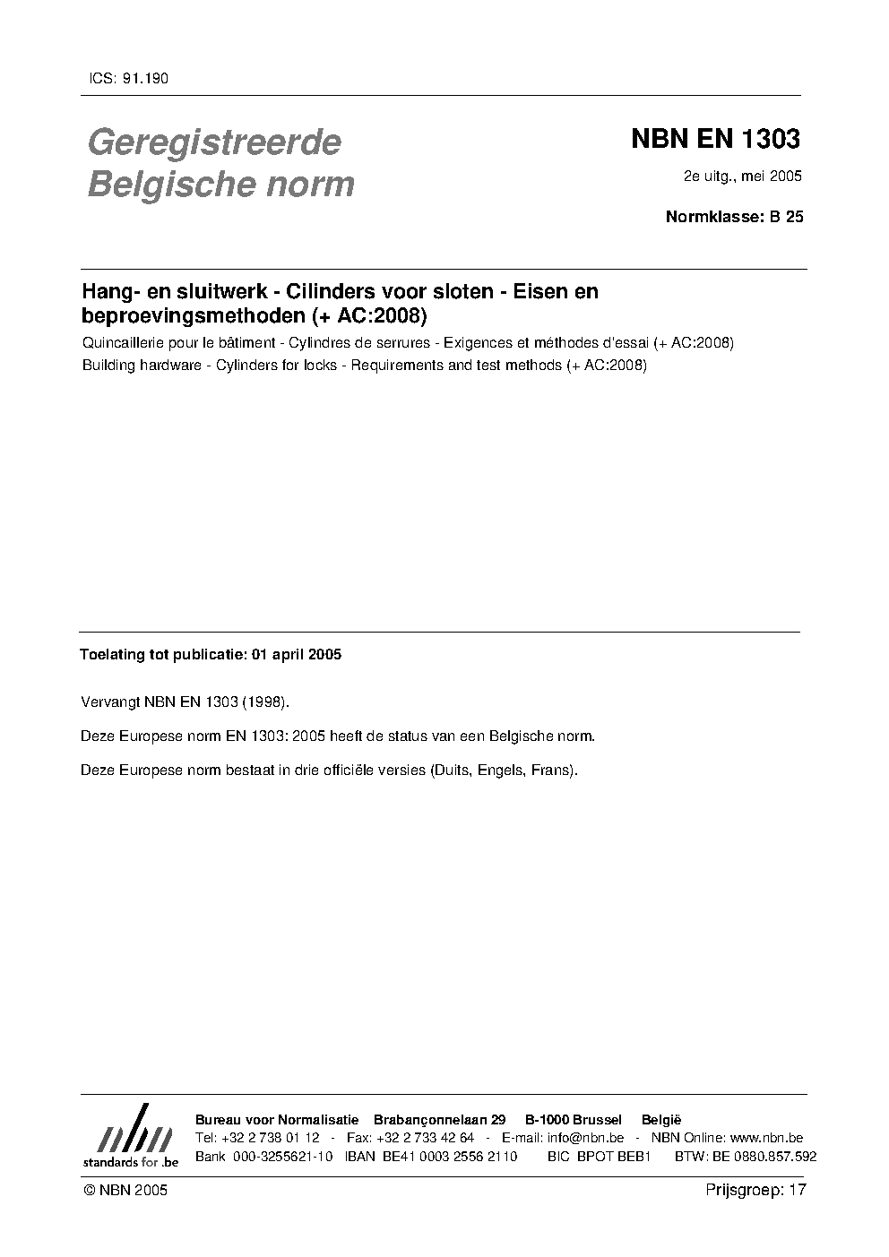 | Publisher | Bureau de Normalisation Belge (NBN) |