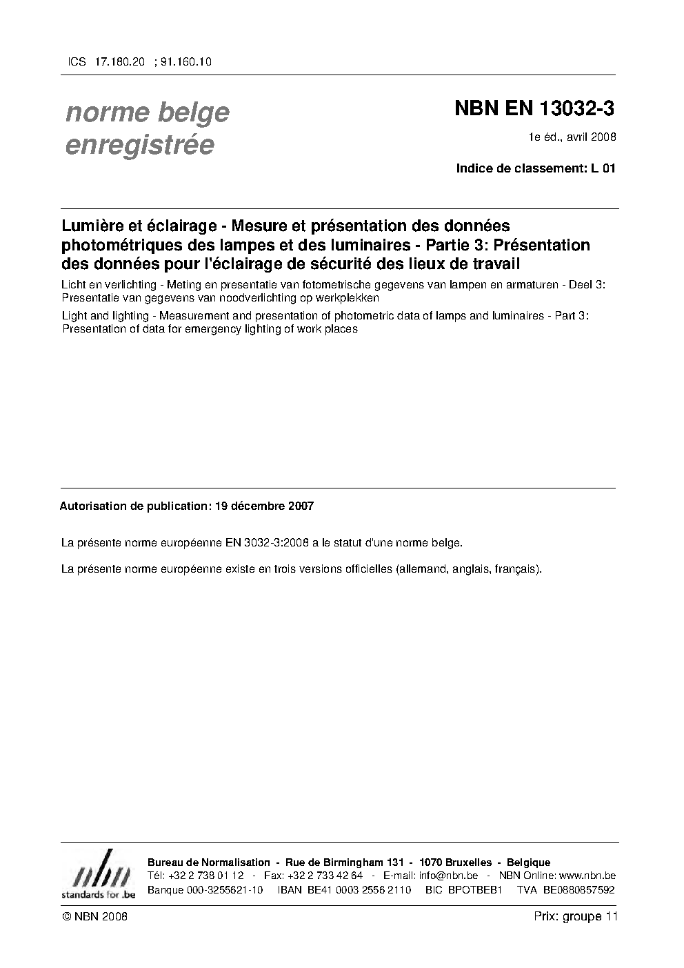 | Publisher | Bureau de Normalisation Belge (NBN) |