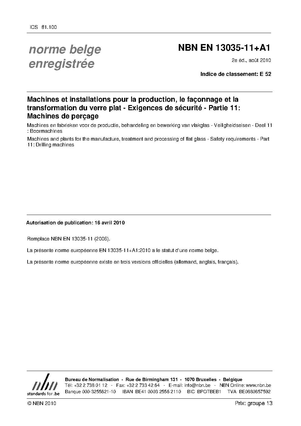 | Publisher | Bureau de Normalisation Belge (NBN) |