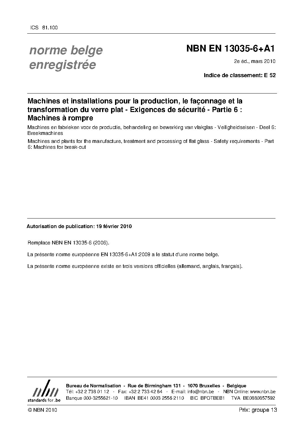 | Publisher | Bureau de Normalisation Belge (NBN) |