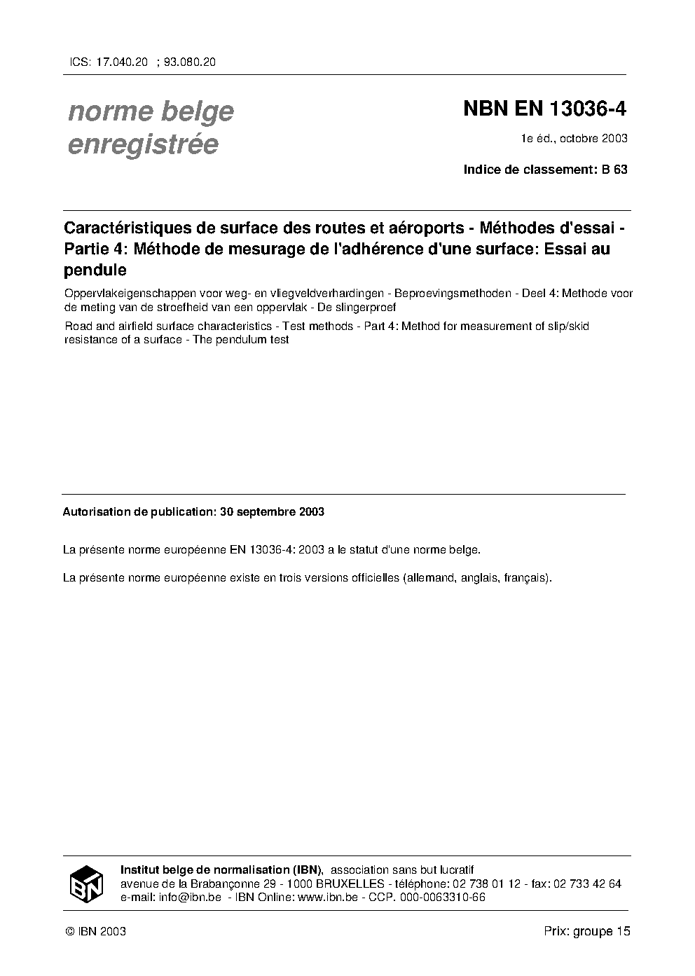 | Publisher | Bureau de Normalisation Belge (NBN) |