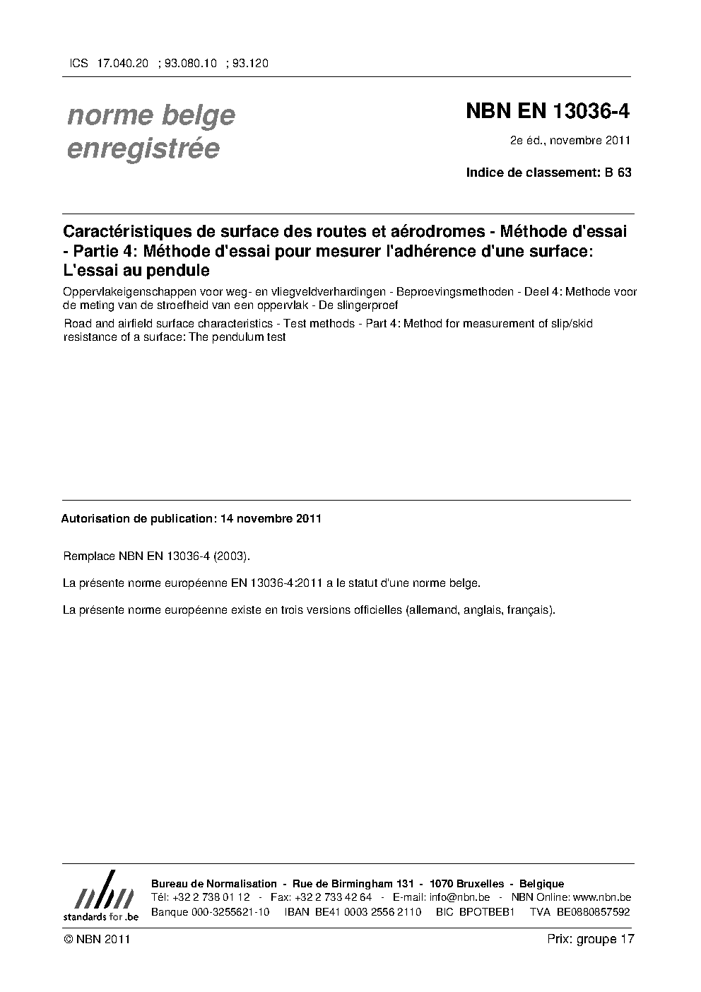 NBN EN 13036-4:2011