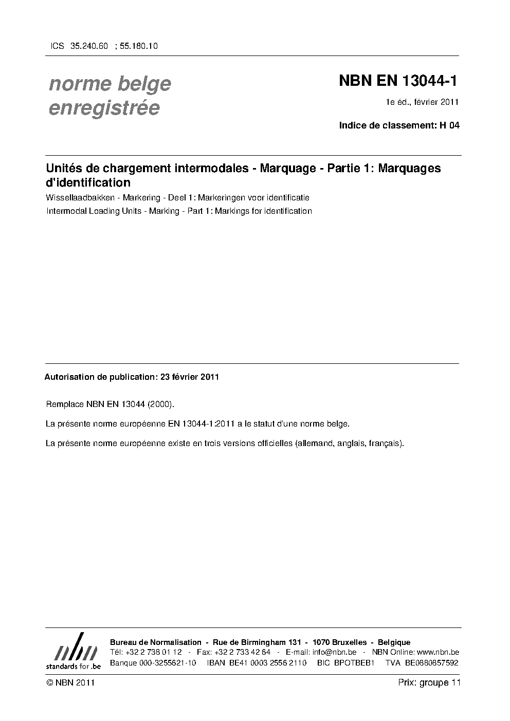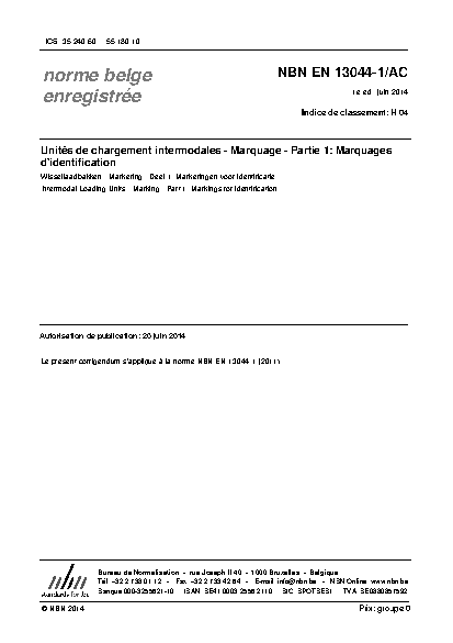 | Publisher | Bureau de Normalisation Belge (NBN) |