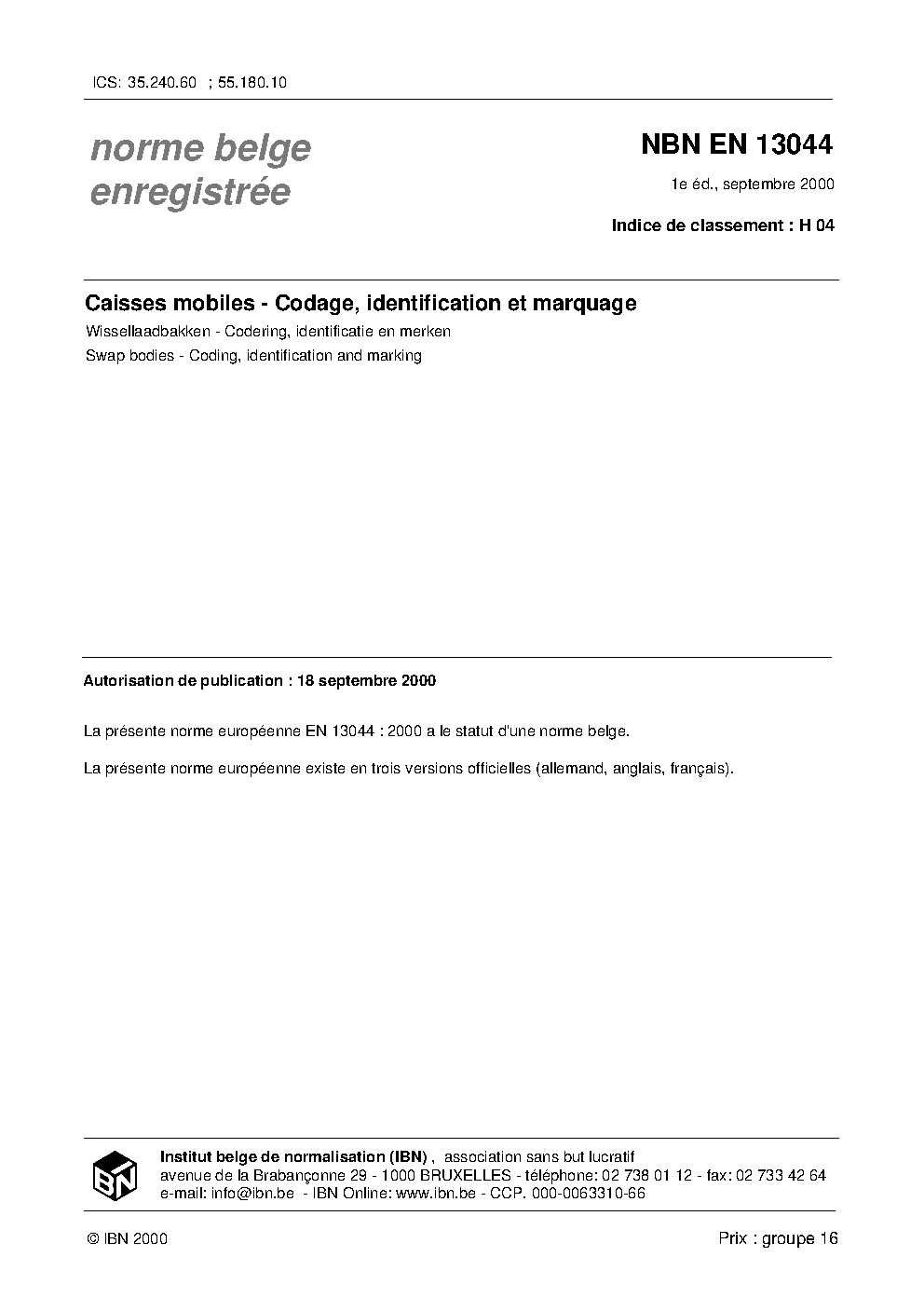 | Publisher | Bureau de Normalisation Belge (NBN) |
