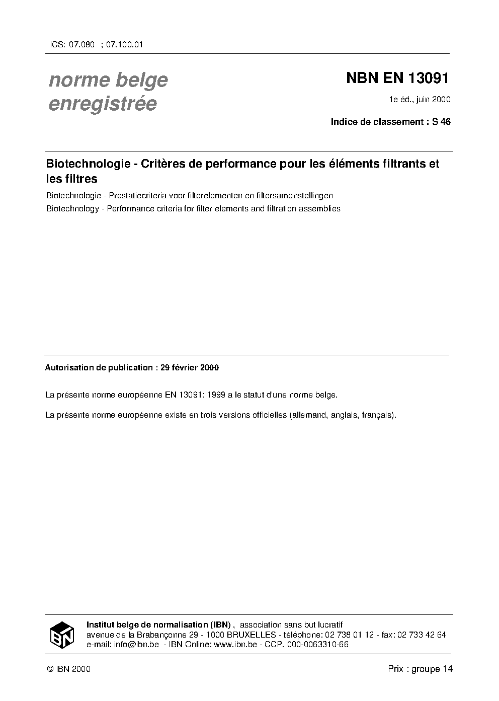 | Publisher | Bureau de Normalisation Belge (NBN) |
