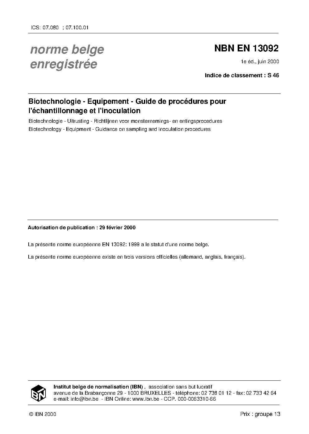 | Publisher | Bureau de Normalisation Belge (NBN) |