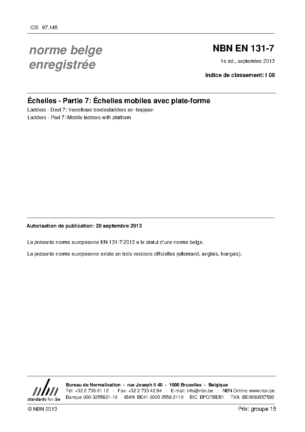 | Publisher | Bureau de Normalisation Belge (NBN) |