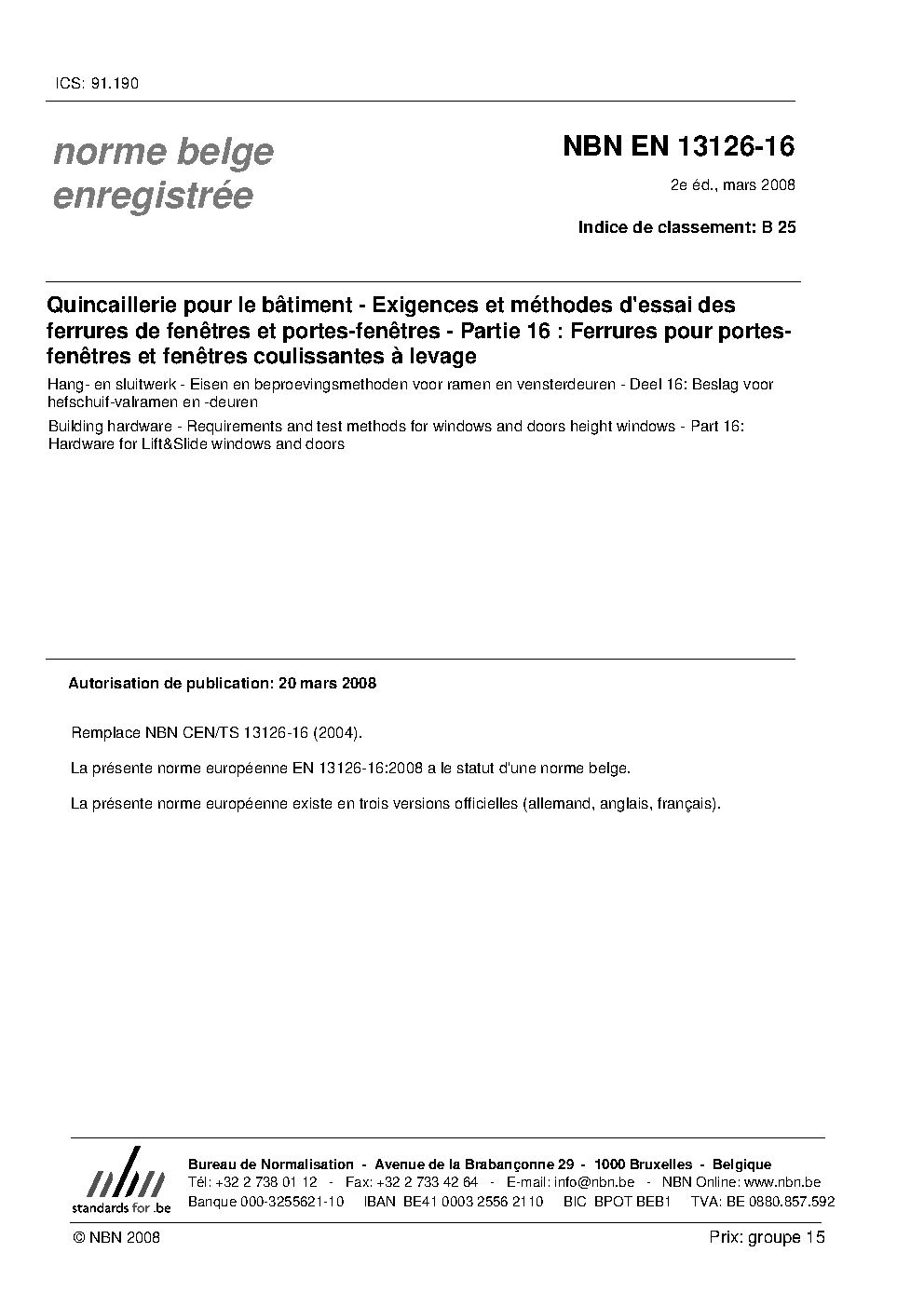 | Publisher | Bureau de Normalisation Belge (NBN) |