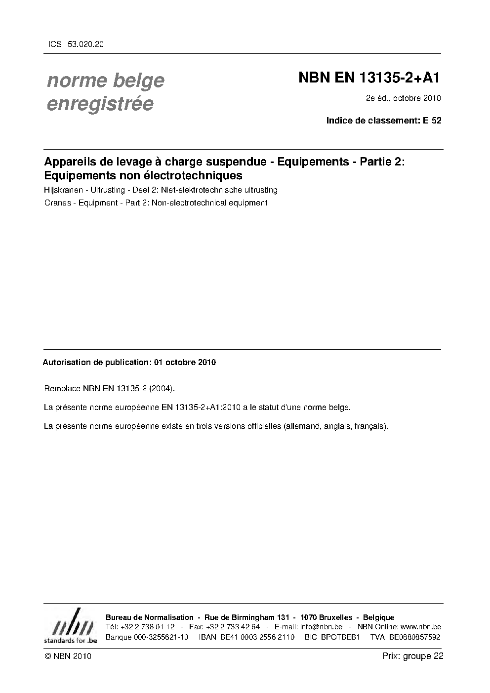 | Publisher | Bureau de Normalisation Belge (NBN) |