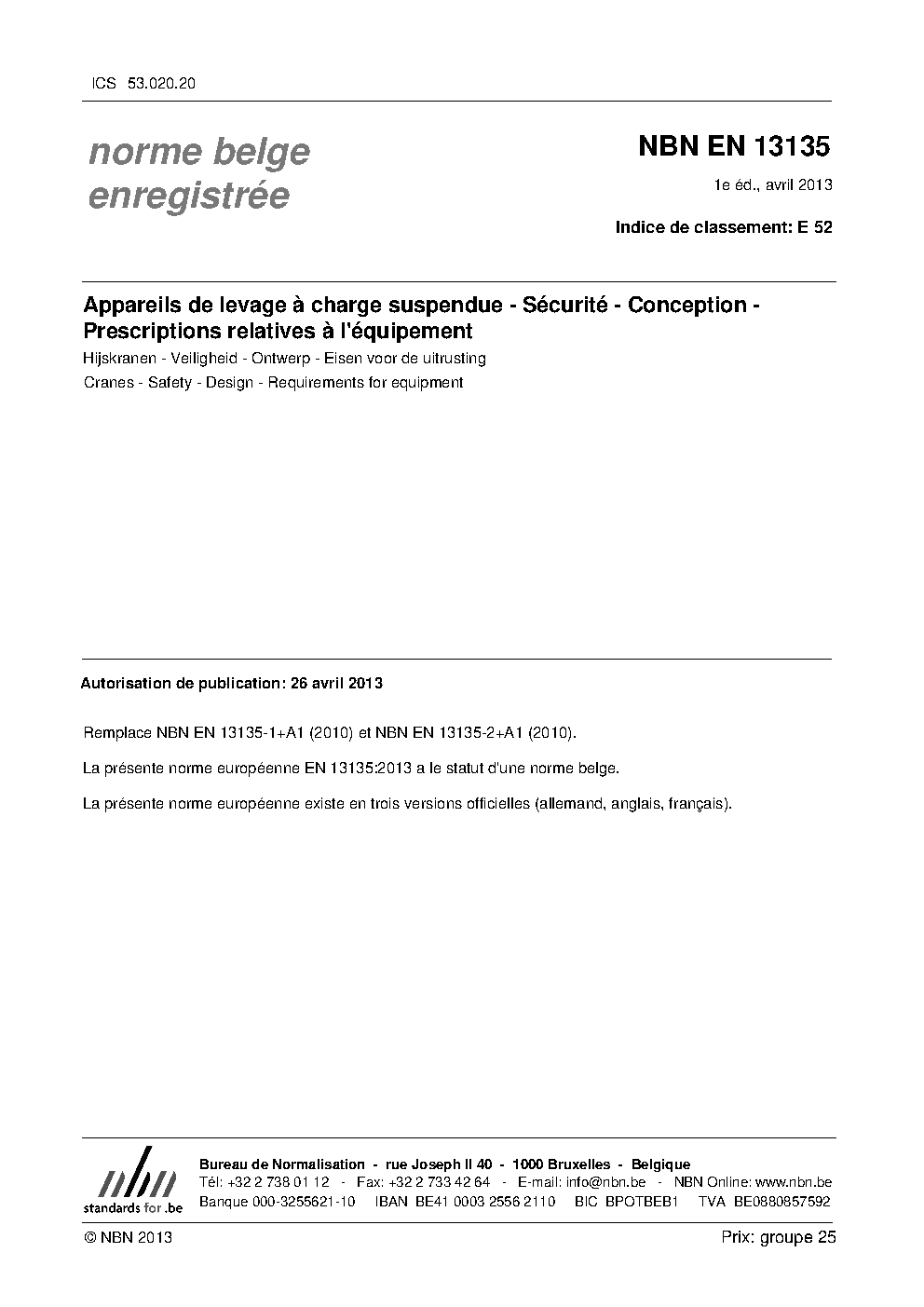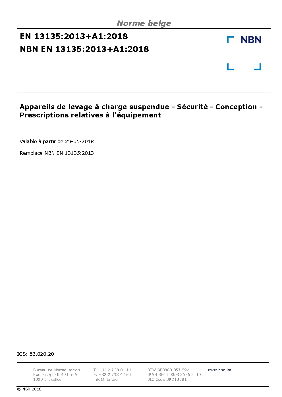 | Publisher | Bureau de Normalisation Belge (NBN) |