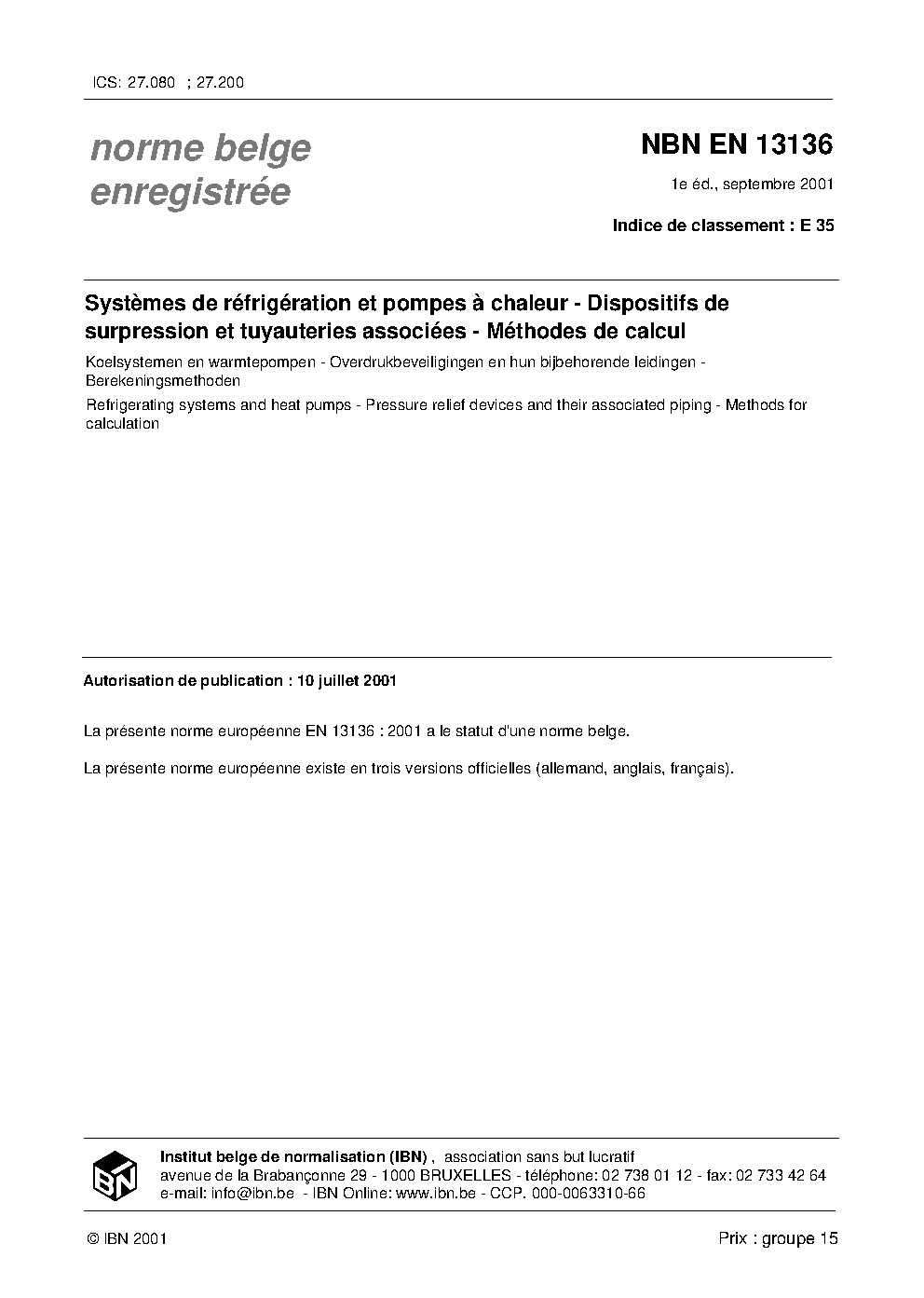 | Publisher | Bureau de Normalisation Belge (NBN) |