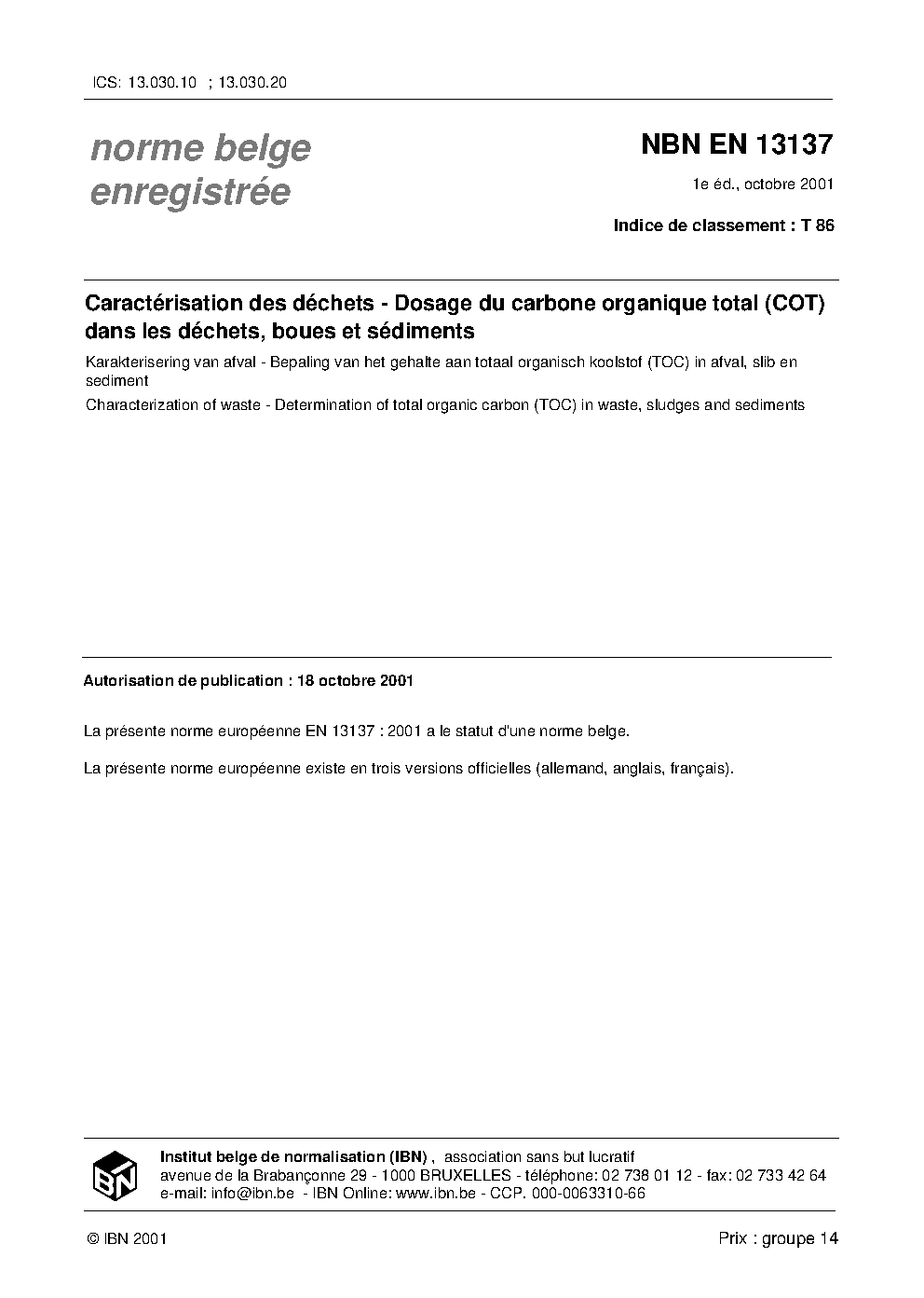 | Publisher | Bureau de Normalisation Belge (NBN) |