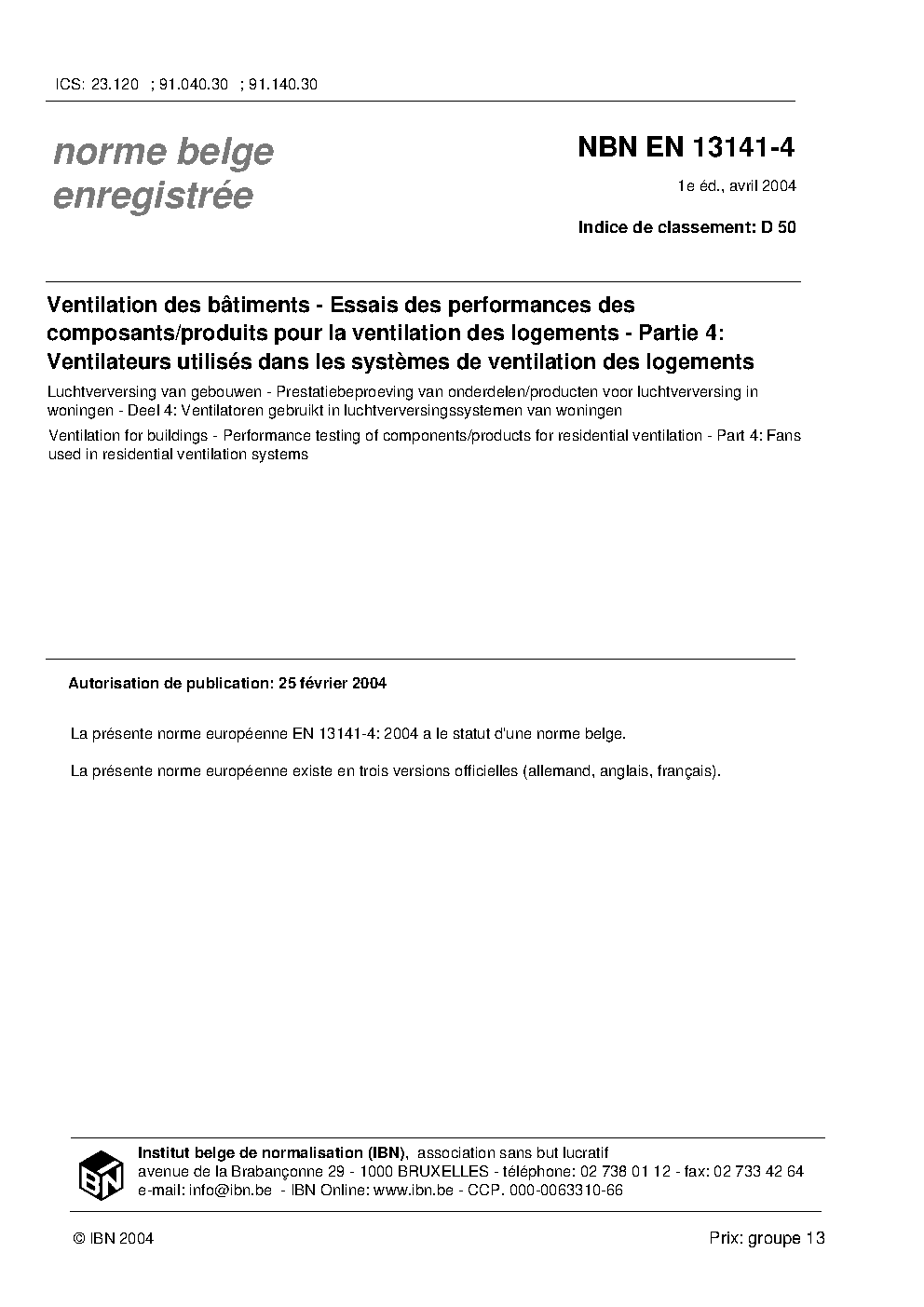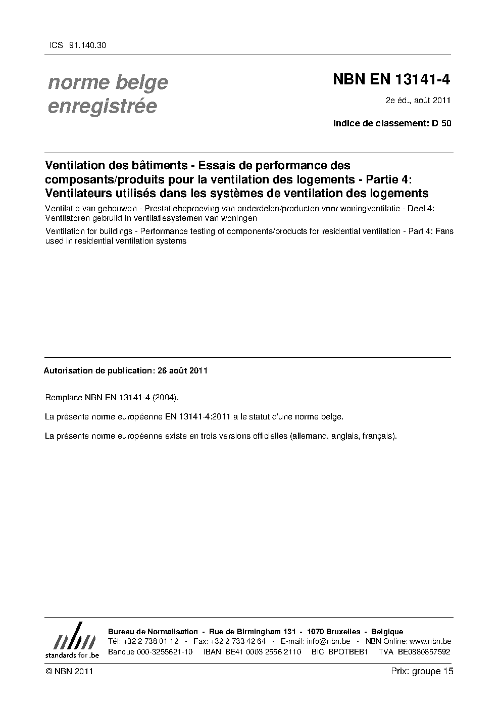 NBN EN 13141-4:2004