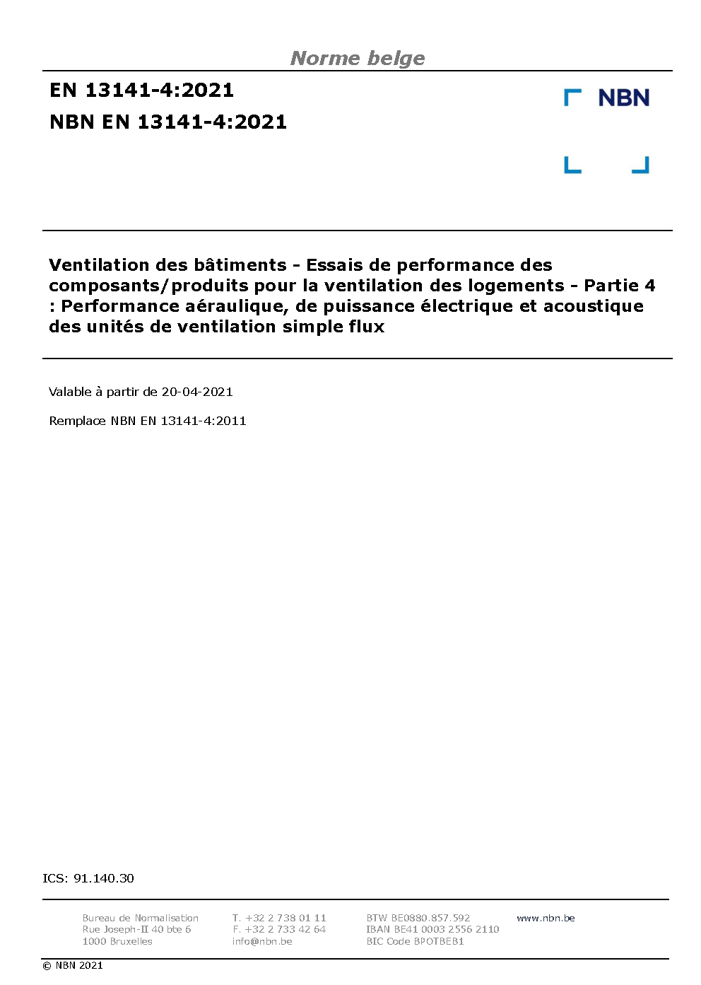 | Publisher | Bureau de Normalisation Belge (NBN) |