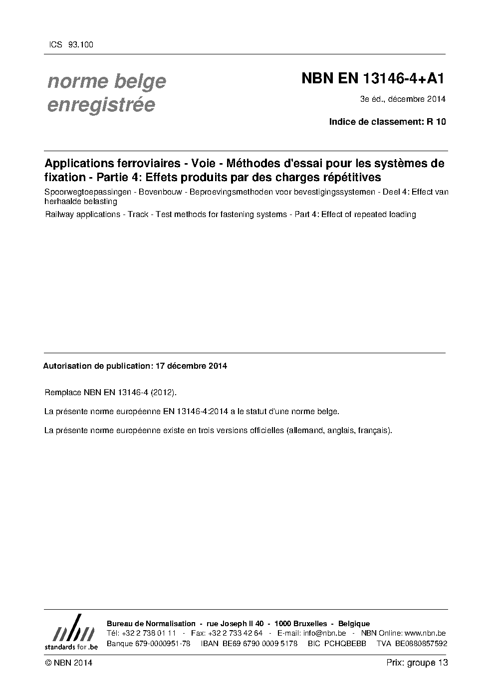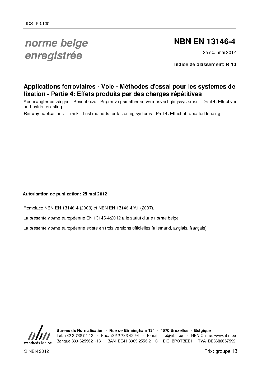 | Publisher | Bureau de Normalisation Belge (NBN) |