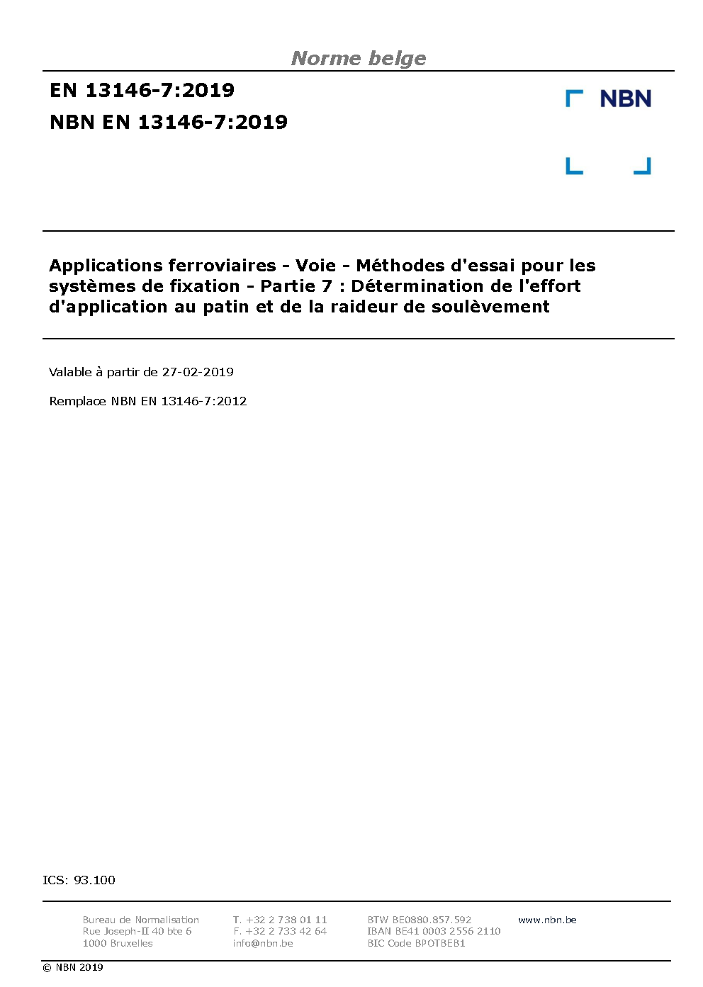 Railway applications - Track - Test methods for fastening systems - Part 7: Determination of clamping force