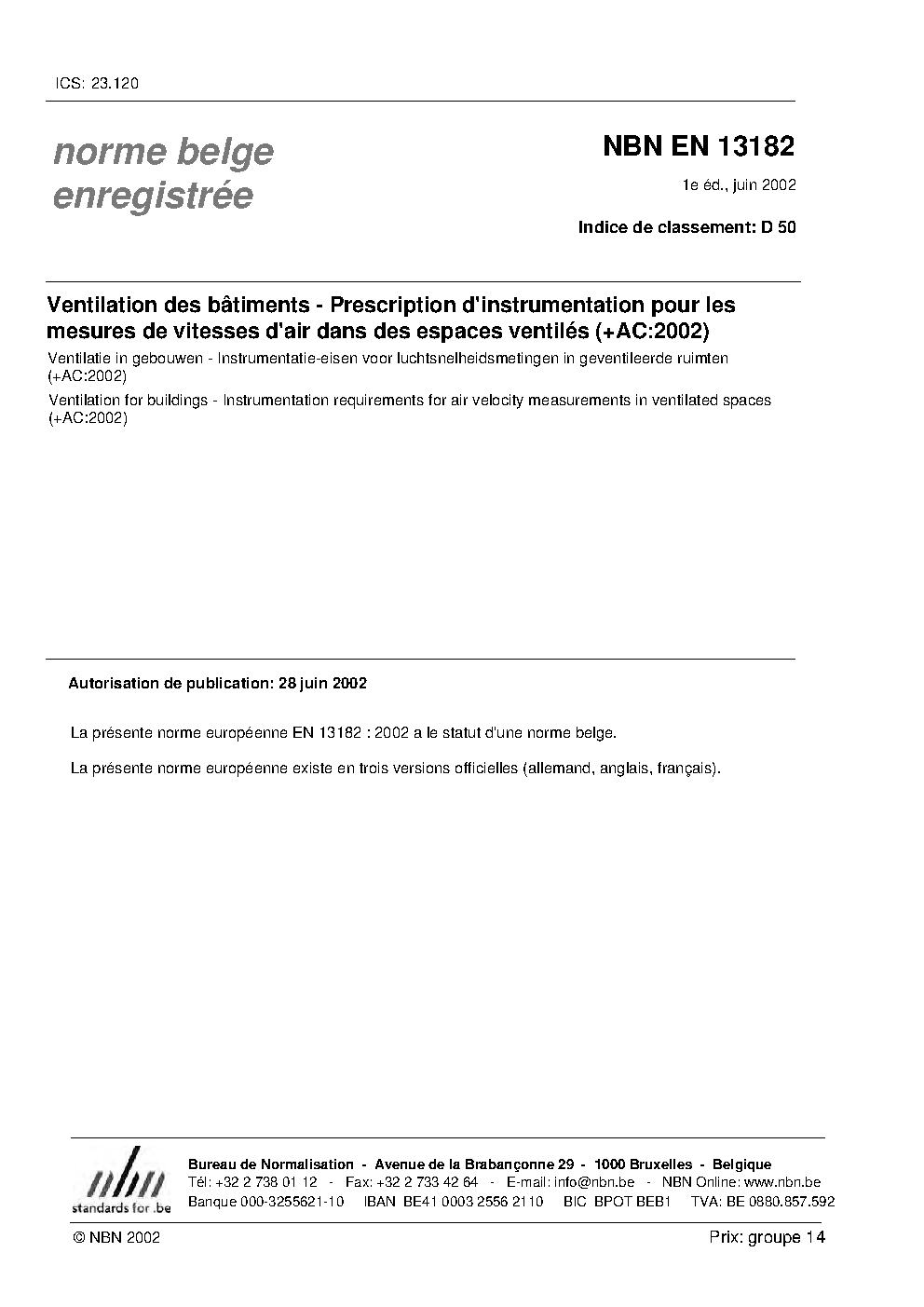 | Publisher | Bureau de Normalisation Belge (NBN) |