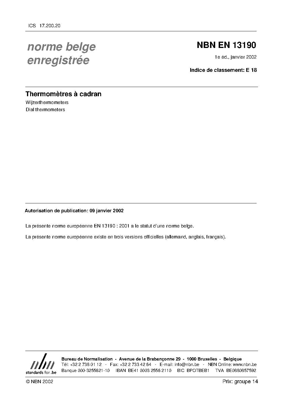 | Publisher | Bureau de Normalisation Belge (NBN) |