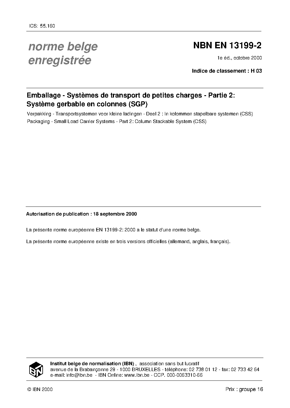 | Publisher | Bureau de Normalisation Belge (NBN) |
