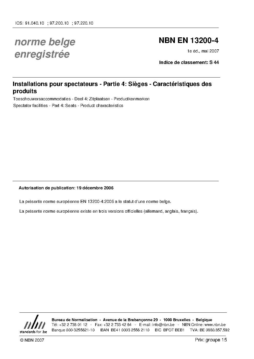 | Publisher | Bureau de Normalisation Belge (NBN) |