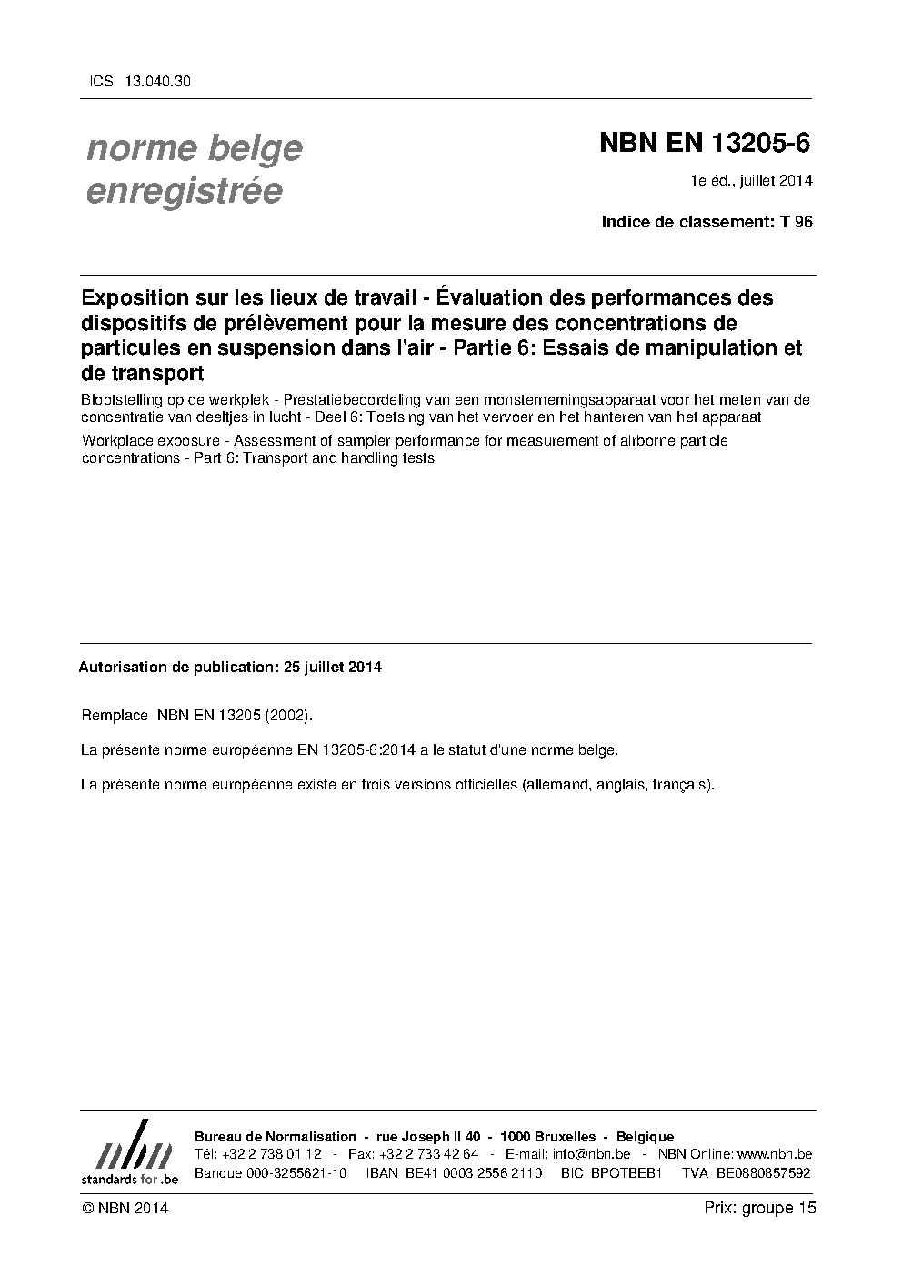 | Publisher | Bureau de Normalisation Belge (NBN) |