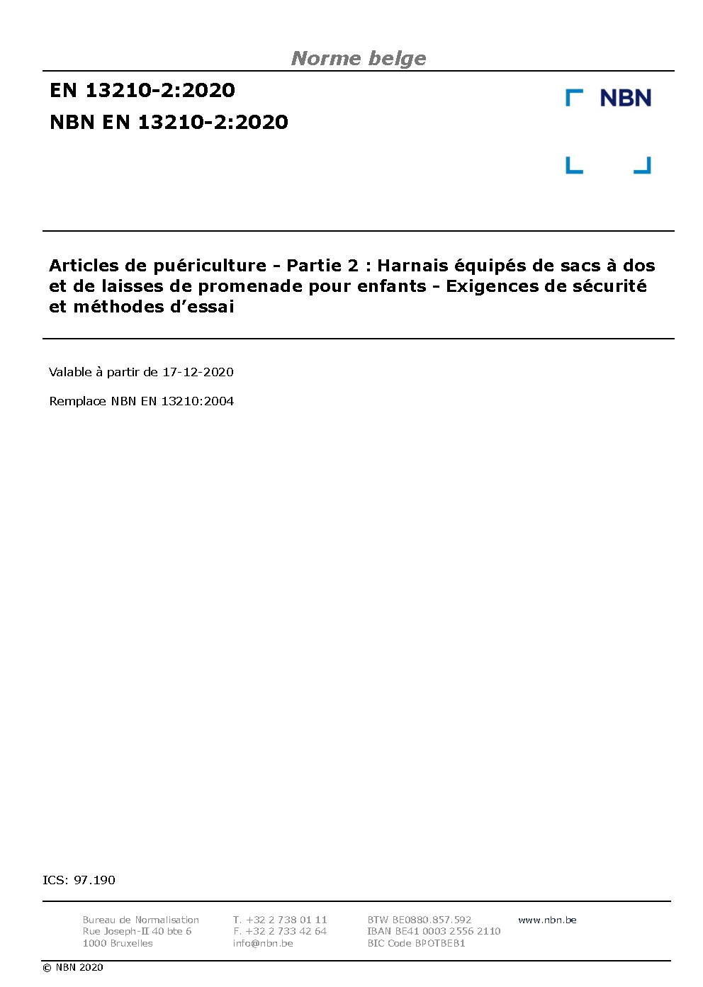 | Publisher | Bureau de Normalisation Belge (NBN) |
