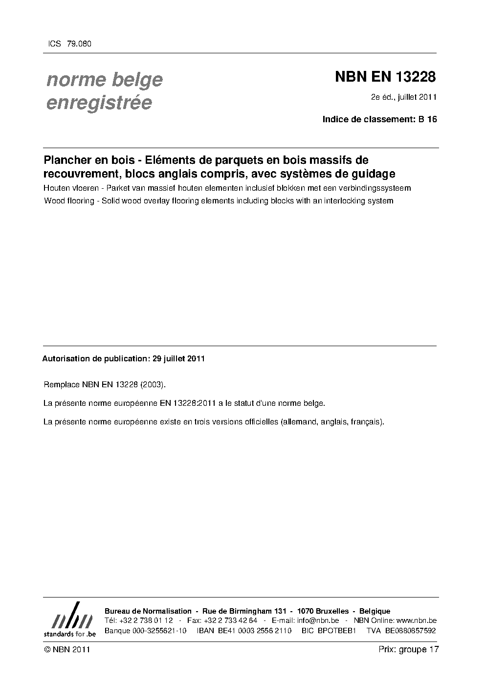 | Publisher | Bureau de Normalisation Belge (NBN) |