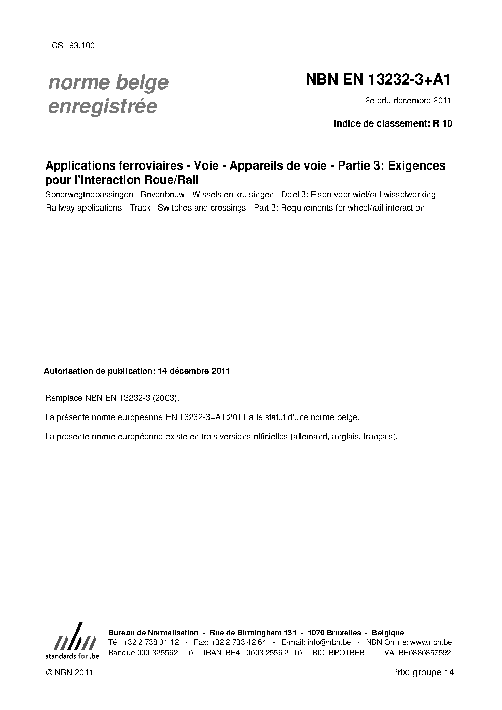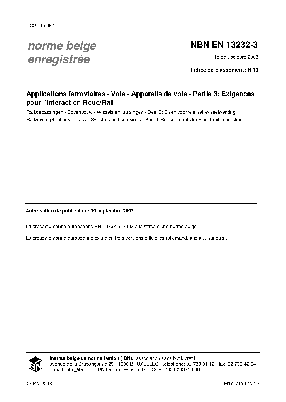 NBN EN 13232-3:2003