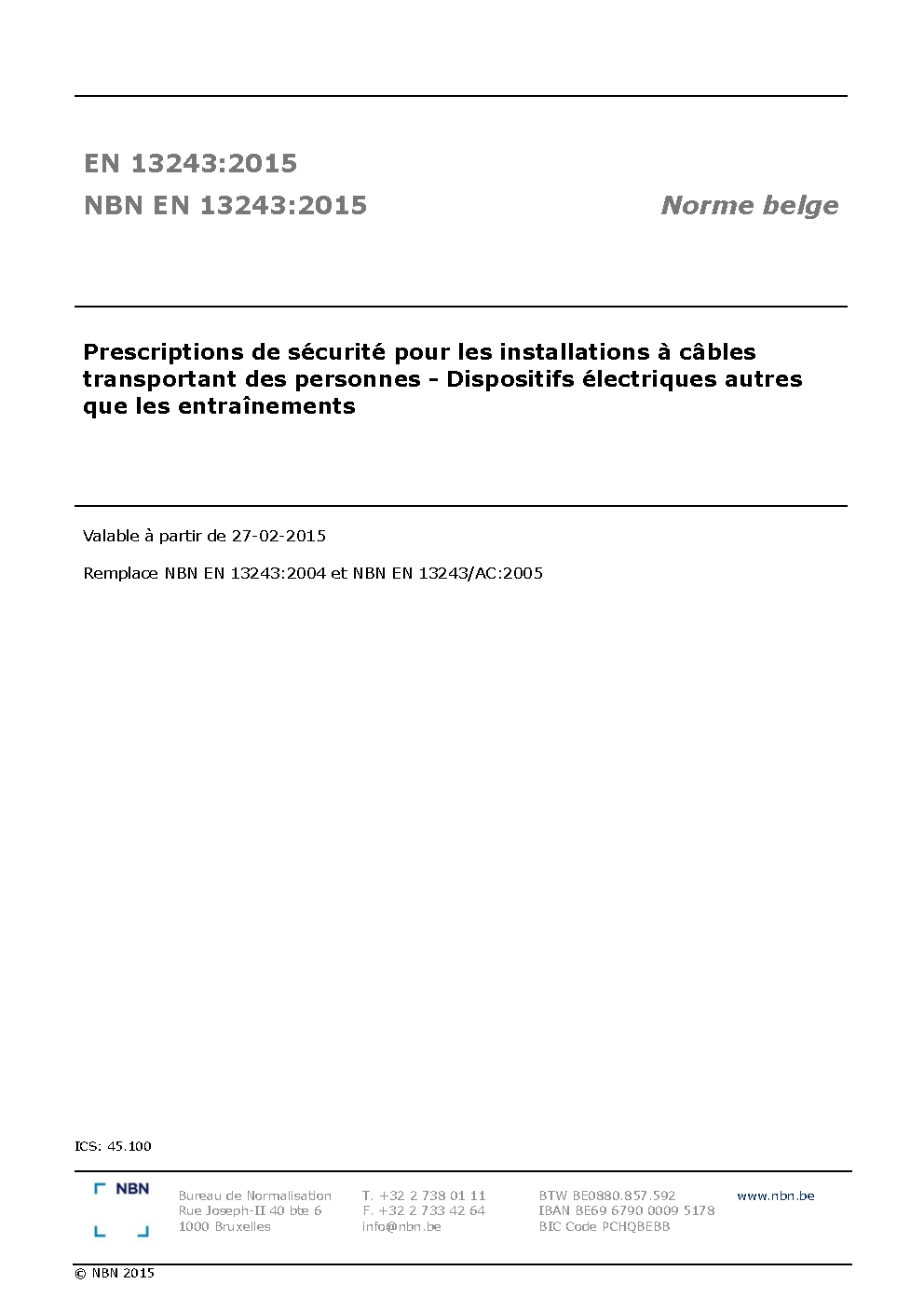 | Publisher | Bureau de Normalisation Belge (NBN) |