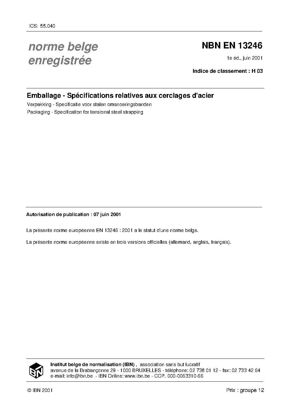 | Publisher | Bureau de Normalisation Belge (NBN) |
