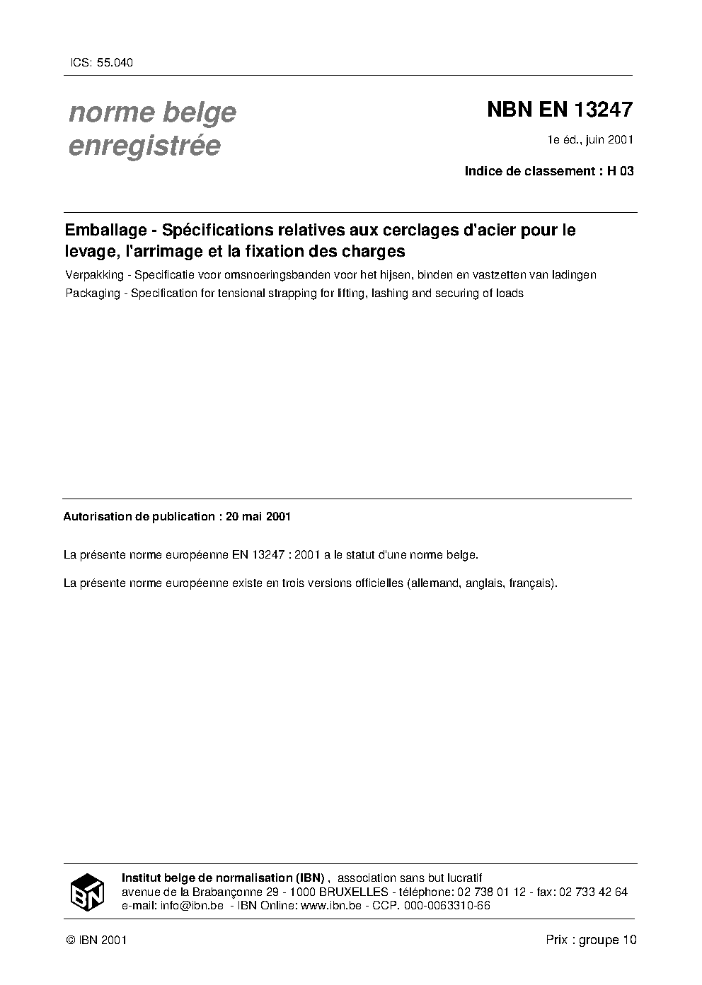 | Publisher | Bureau de Normalisation Belge (NBN) |