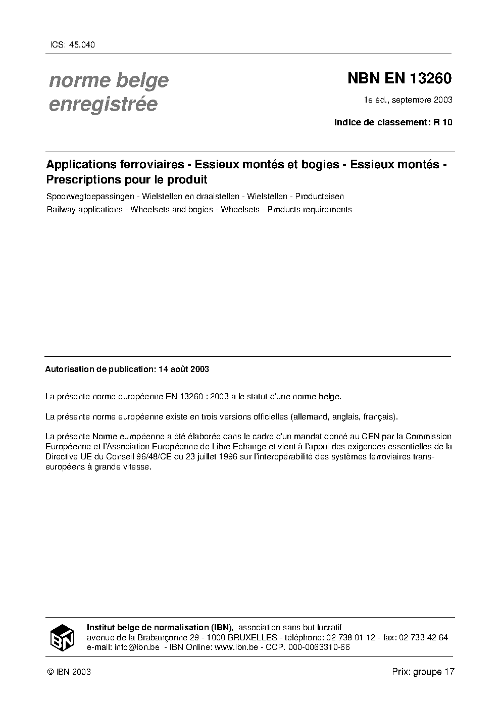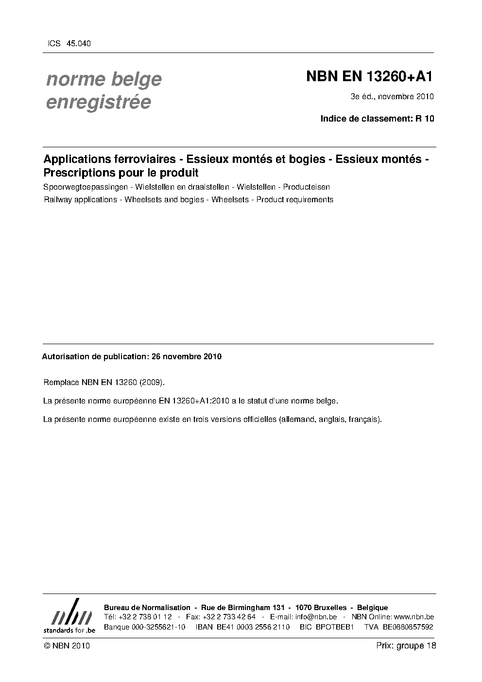 | Publisher | Bureau de Normalisation Belge (NBN) |