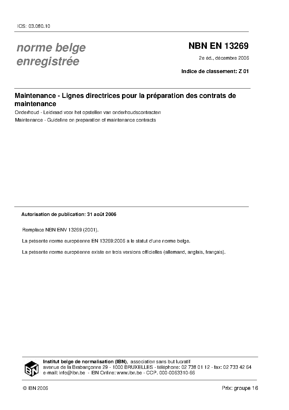 | Publisher | Bureau de Normalisation Belge (NBN) |