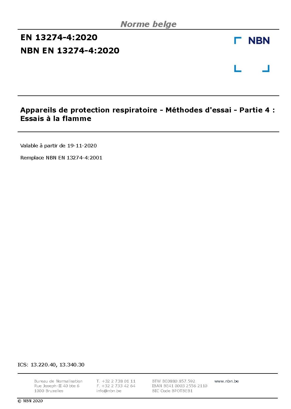 This document specifies methods for flame tests to be applied to respiratory protective devices.