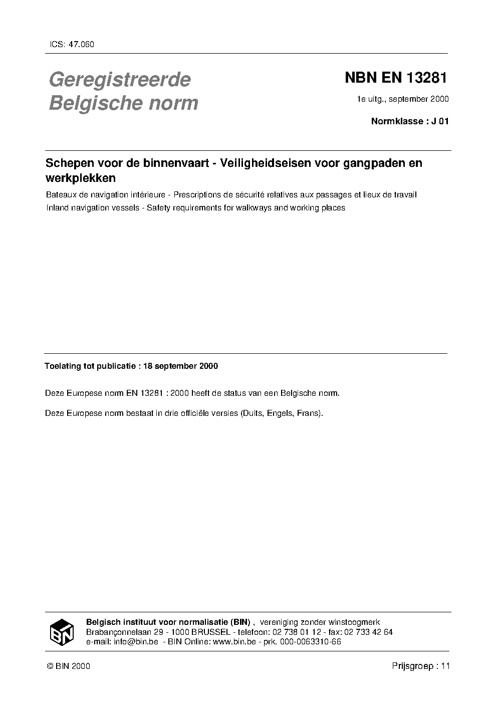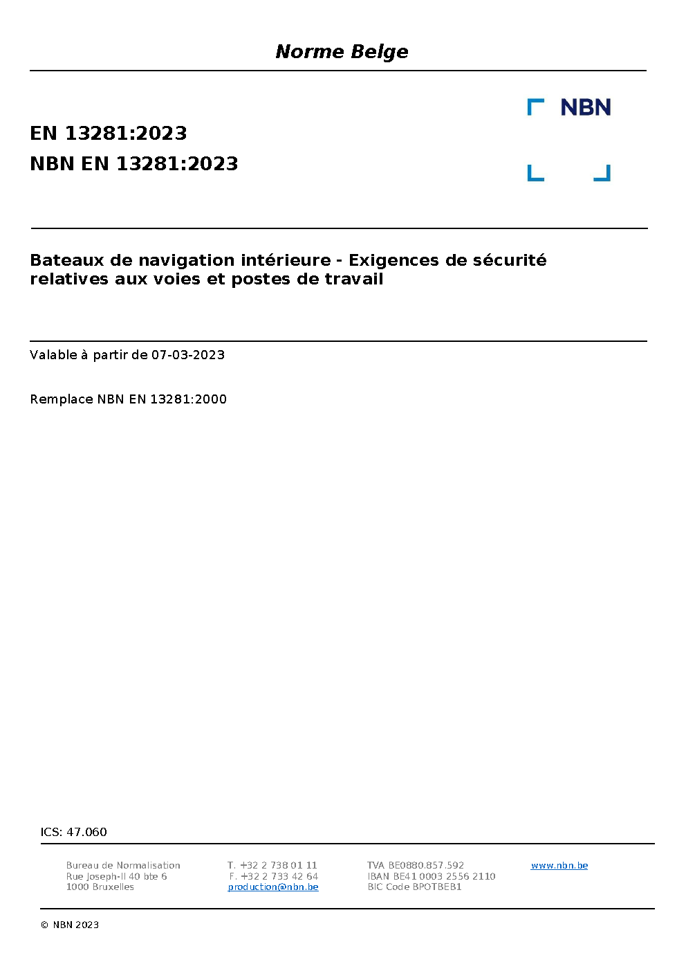 | Publisher | Bureau de Normalisation Belge (NBN) |