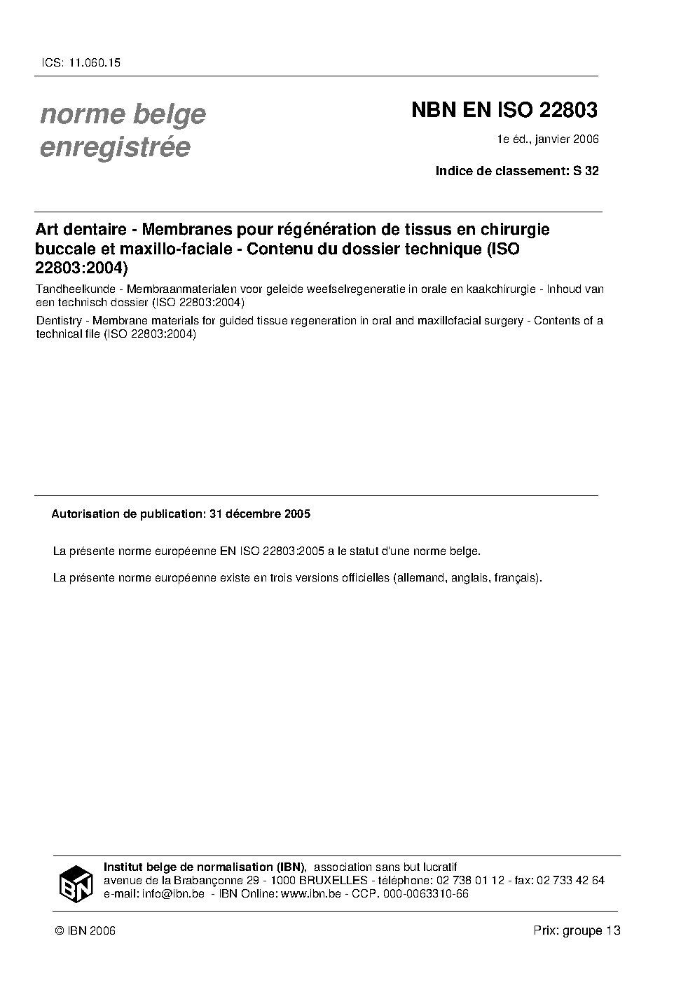 | Publisher | Bureau de Normalisation Belge (NBN) |