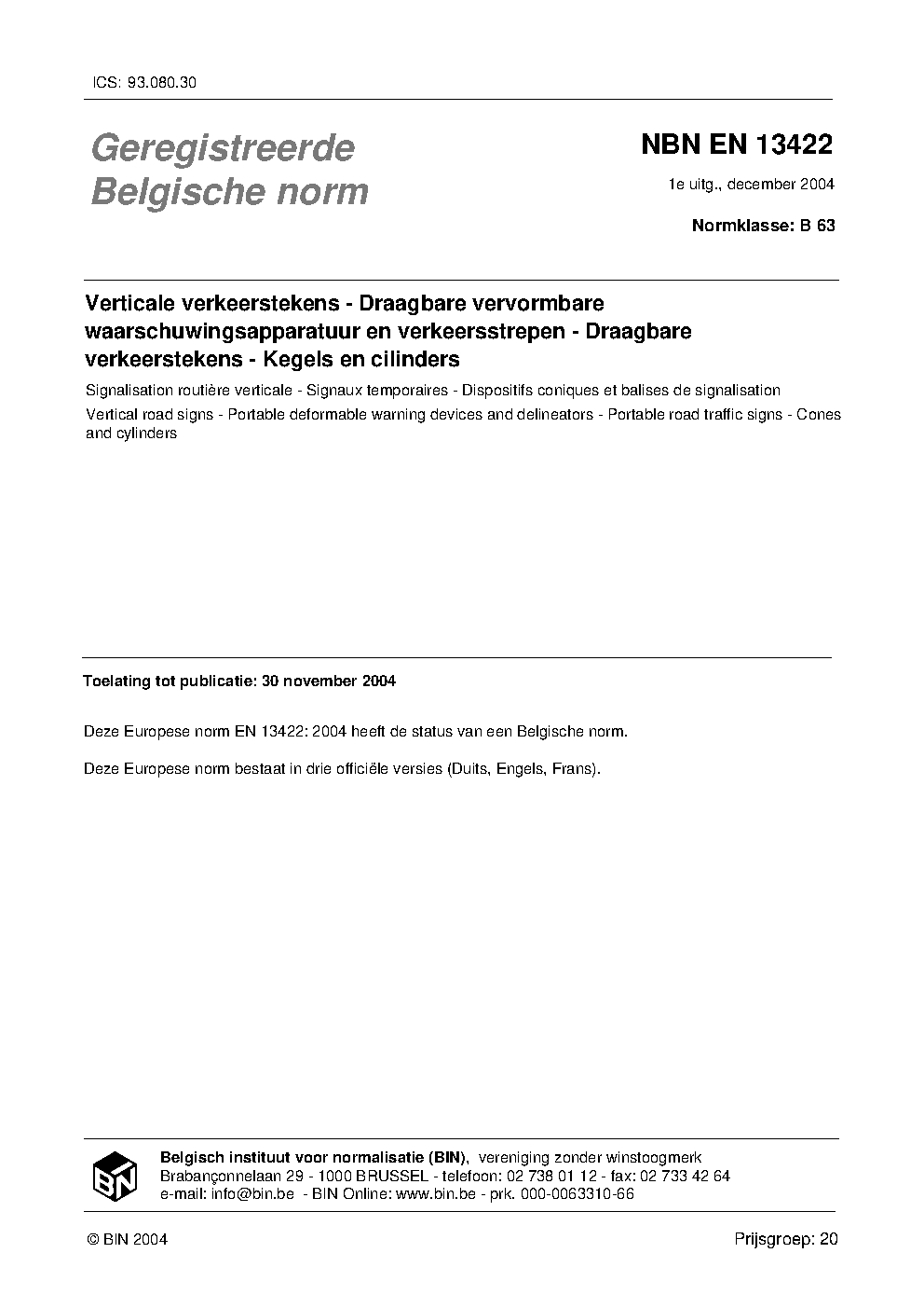 | Publisher | Bureau de Normalisation Belge (NBN) |