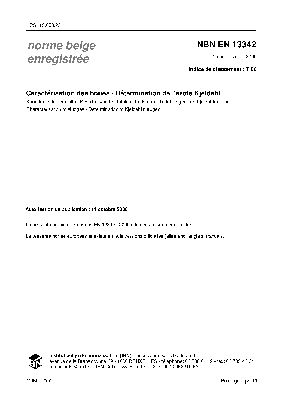 | Publisher | Bureau de Normalisation Belge (NBN) |
