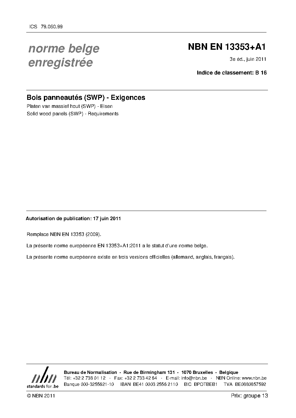 | Publisher | Bureau de Normalisation Belge (NBN) |