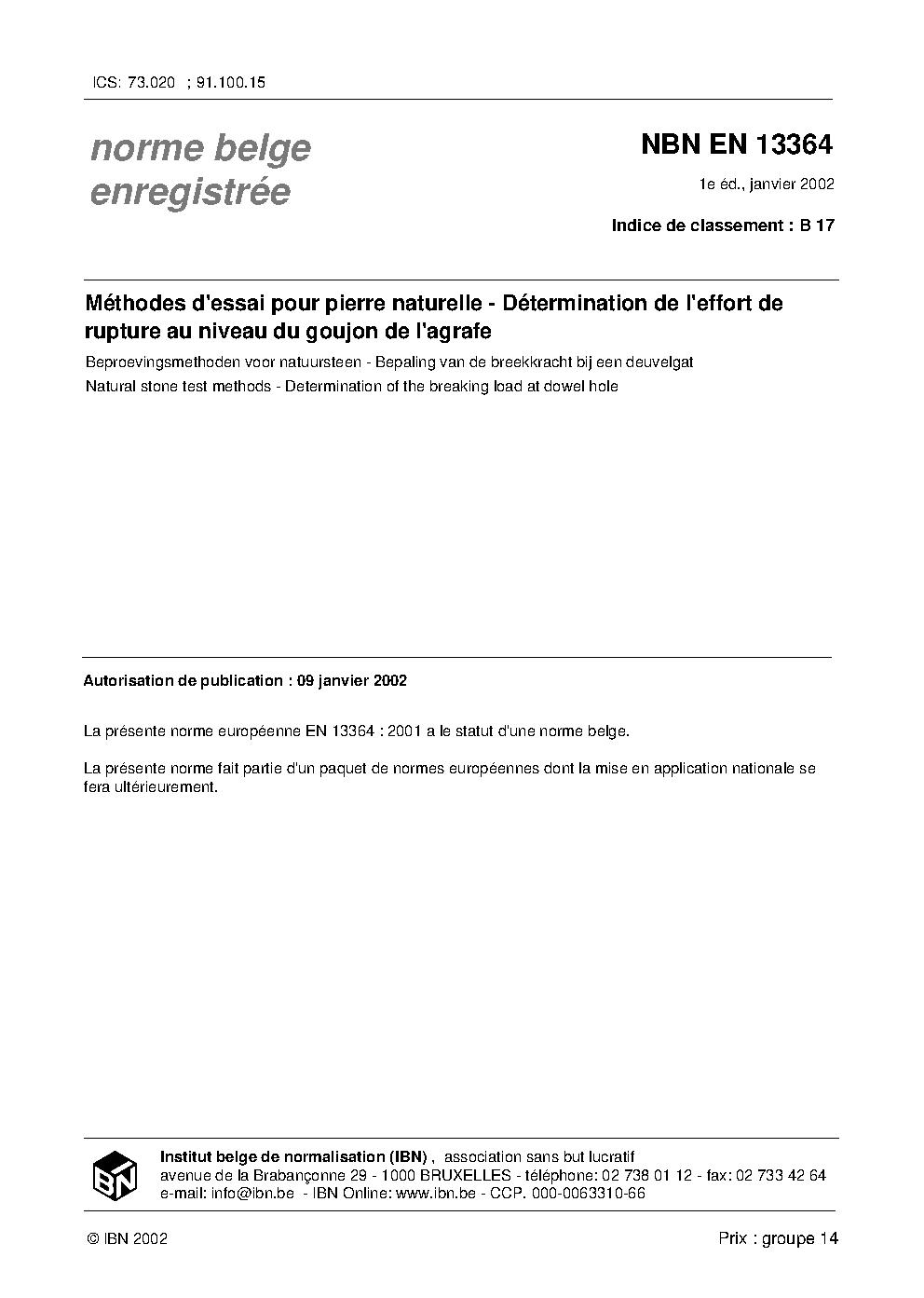 NBN EN 13364:2002