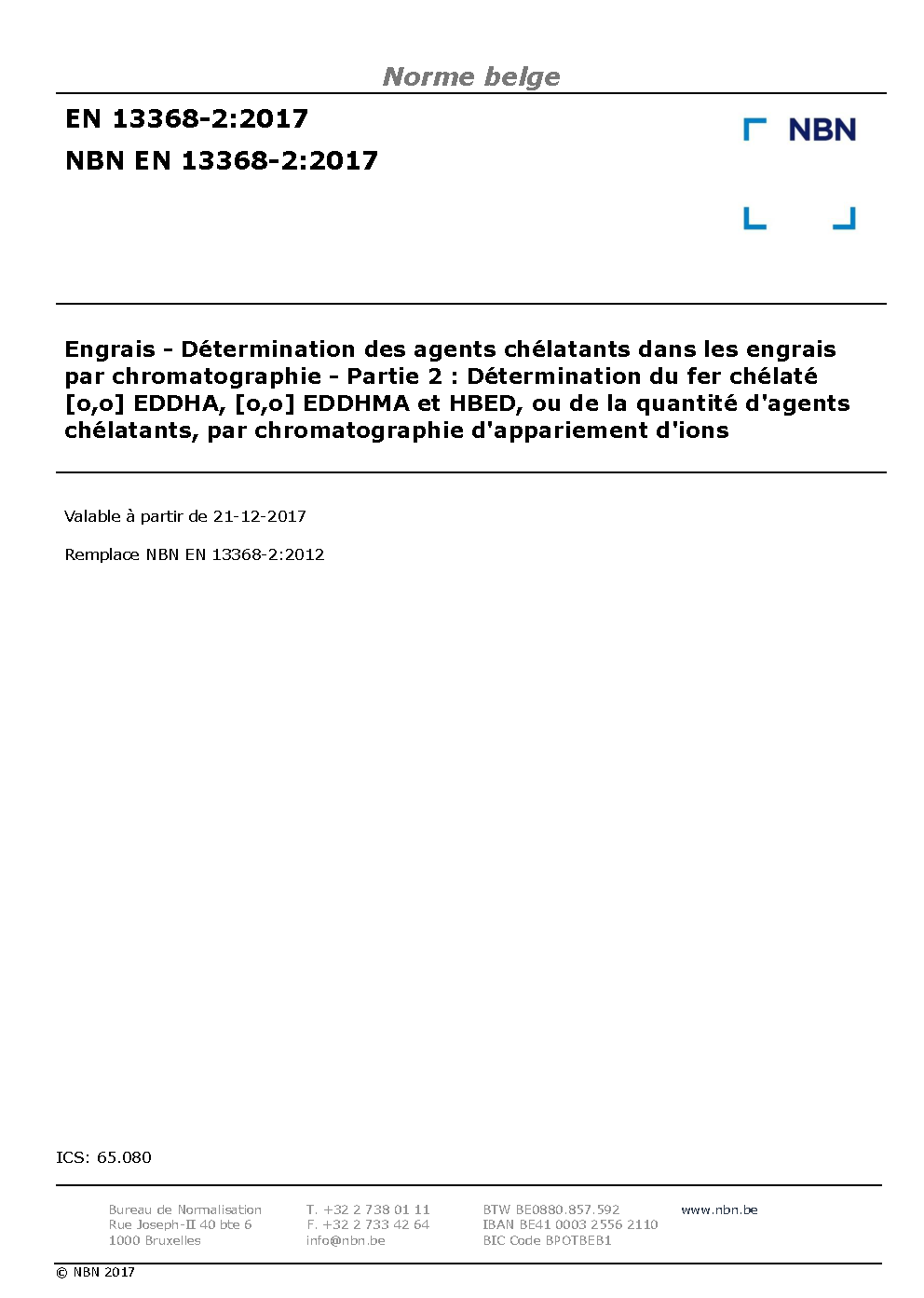| Publisher | Bureau de Normalisation Belge (NBN) |