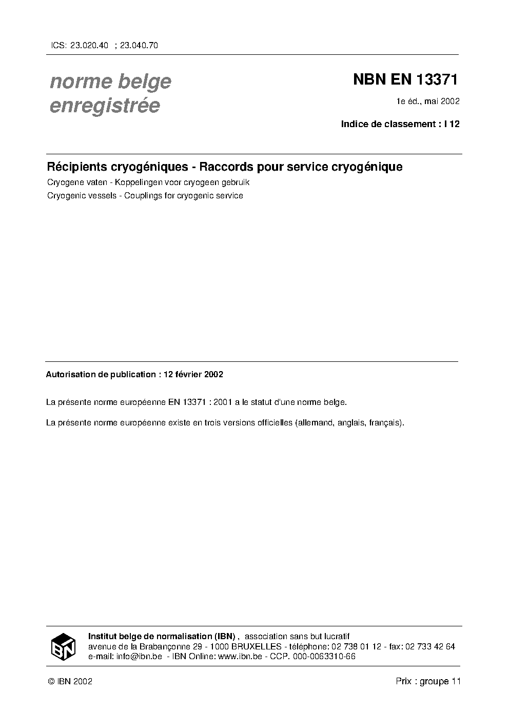 | Publisher | Bureau de Normalisation Belge (NBN) |